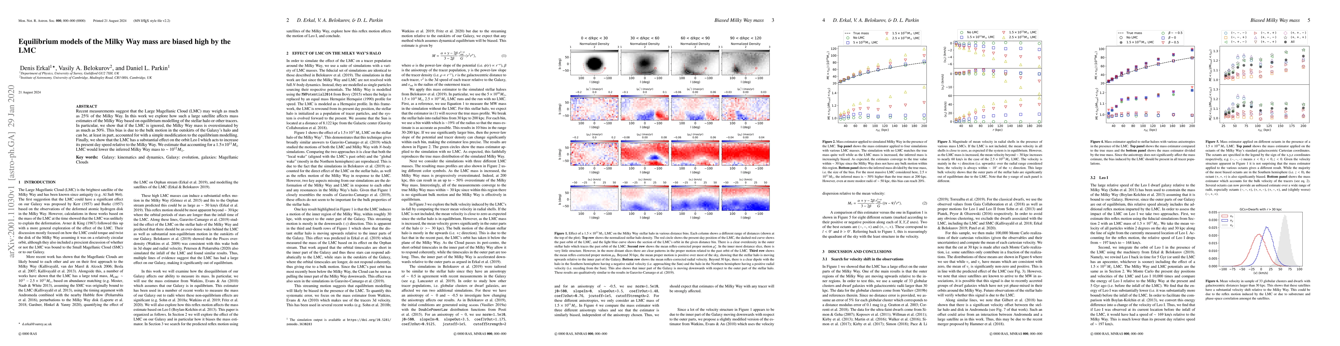 This paper demonstrates that equilibrium models of the Milky Way's mass are significantly overestimated by up to 50% when the Large Magellanic Cloud (LMC) is ignored, due to the LMC's substantial gravitational influence. Accounting for the LMC's mass reduces the inferred Milky Way mass to approximately $10^{12} M_\odot$.