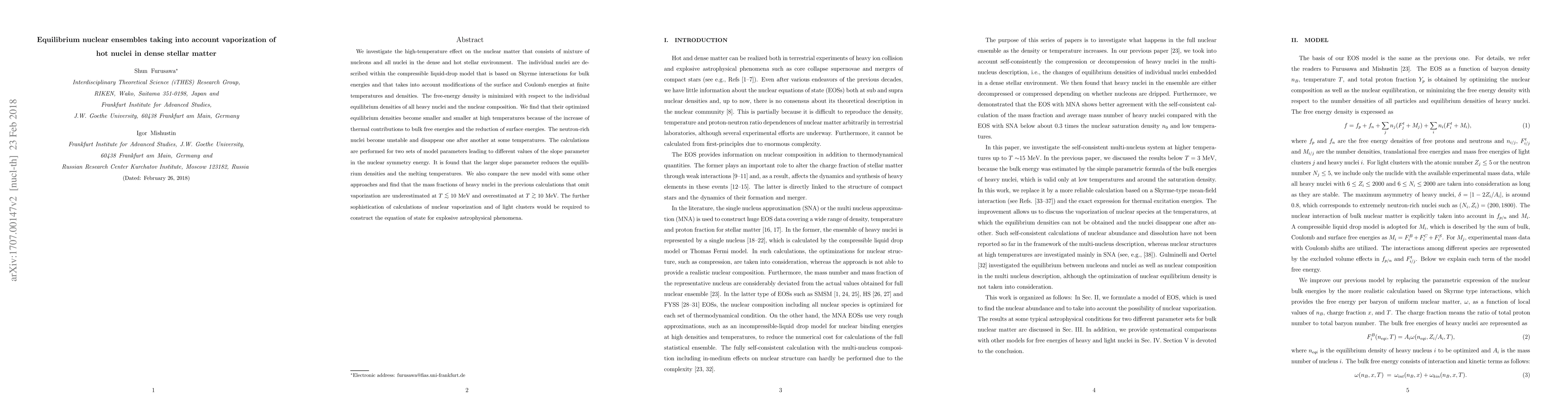 We investigate the high-temperature effect on the nuclear matter that consists of mixture of nucleons and all nuclei in the dense and hot stellar environment. The individual nuclei are described within the compressible liquid-drop model that is based on Skyrme interactions for bulk energies and that takes into account modifications of the surface and Coulomb energies at finite temperatures and densities. The free-energy density is minimized with respect to the individual equilibrium densities of all heavy nuclei and the nuclear composition. We find that their optimized equilibrium densities become smaller and smaller at high temperatures because of the increase of thermal contributions to bulk free energies and the reduction of surface energies. The neutron-rich nuclei become unstable and disappear one after another at some temperatures. The calculations are performed for two sets of model parameters leading to different values of the slope parameter in the nuclear symmetry energy. It is found that the larger slope parameter reduces the equilibrium densities and the melting temperatures. We also compare the new model with some other approaches and find that the mass fractions of heavy nuclei in the previous calculations that omit vaporization are underestimated at $T \lesssim 10$MeV and overestimated at $T\gtrsim10$~MeV. The further sophistication of calculations of nuclear vaporization and of light clusters would be required to construct the equation of state for explosive astrophysical phenomena.