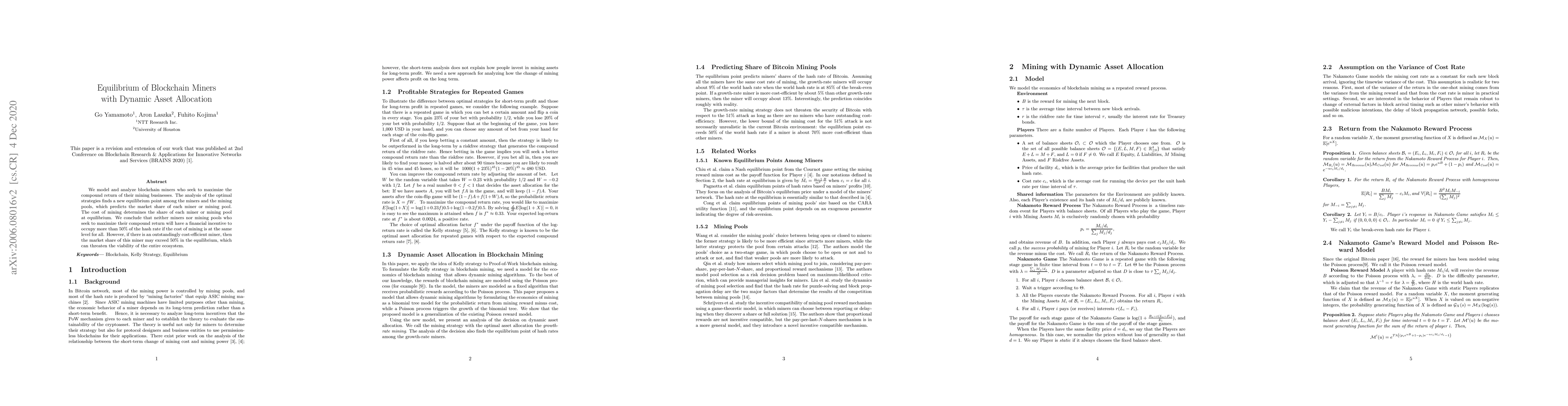 This paper models blockchain miners' strategies to maximize their compound returns, identifying a new equilibrium where the market share of miners or mining pools is determined by mining costs. It concludes that no single entity will dominate more than 50% of the hash rate if costs are uniform, but cost-efficiency can shift this balance, potentially threatening ecosystem stability.