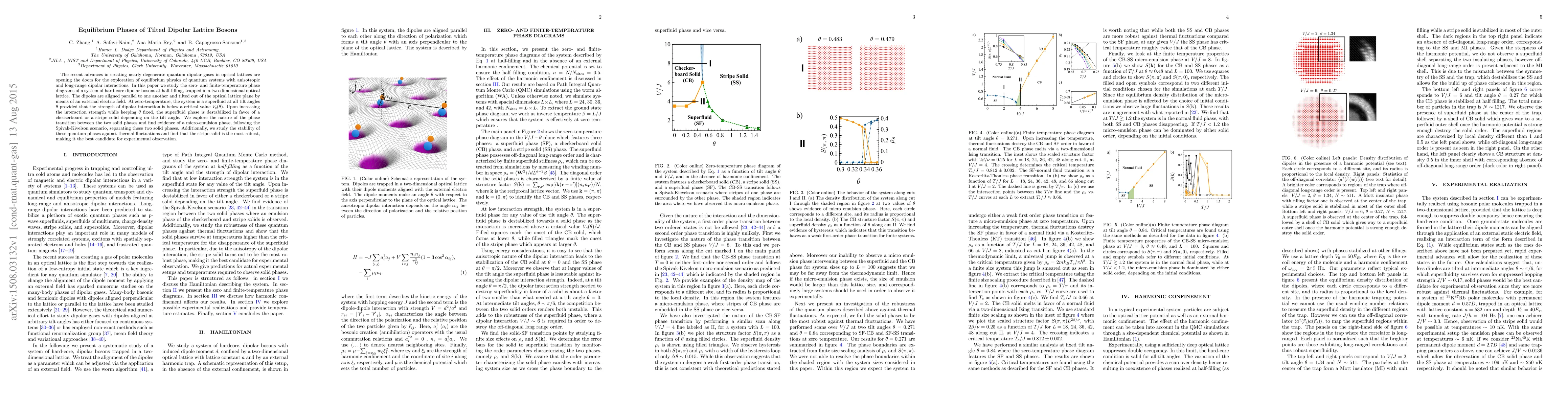 This paper investigates the equilibrium phase diagrams of tilted dipolar bosons in a two-dimensional optical lattice, revealing a superfluid phase at low dipolar interaction strengths and transitioning to checkerboard or stripe solid phases at higher strengths. The study identifies a micro-emulsion phase separating the solid phases and finds the stripe solid to be the most stable against thermal fluctuations.