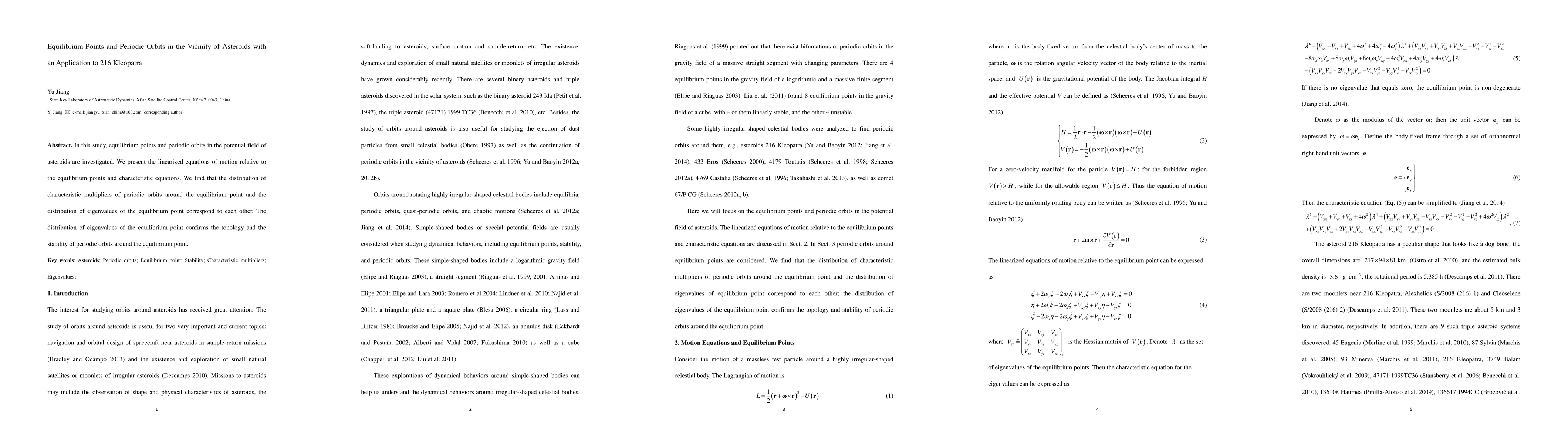 In this study, equilibrium points and periodic orbits in the potential field of asteroids are investigated. We present the linearized equations of motion relative to the equilibrium points and characteristic equations. We find that the distribution of characteristic multipliers of periodic orbits around the equilibrium point and the distribution of eigenvalues of the equilibrium point correspond to each other. The distribution of eigenvalues of the equilibrium point confirms the topology and the stability of periodic orbits around the equilibrium point.