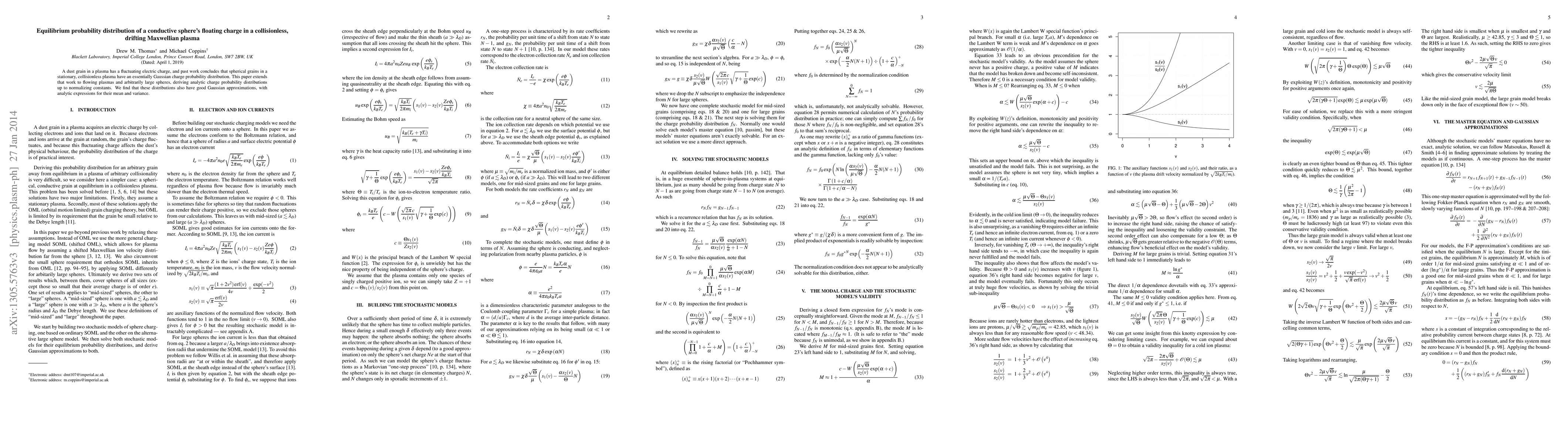 A dust grain in a plasma has a fluctuating electric charge, and past work concludes that spherical grains in a stationary, collisionless plasma have an essentially Gaussian charge probability distribution. This paper extends that work to flowing plasmas and arbitrarily large spheres, deriving analytic charge probability distributions up to normalizing constants. We find that these distributions also have good Gaussian approximations, with analytic expressions for their mean and variance.