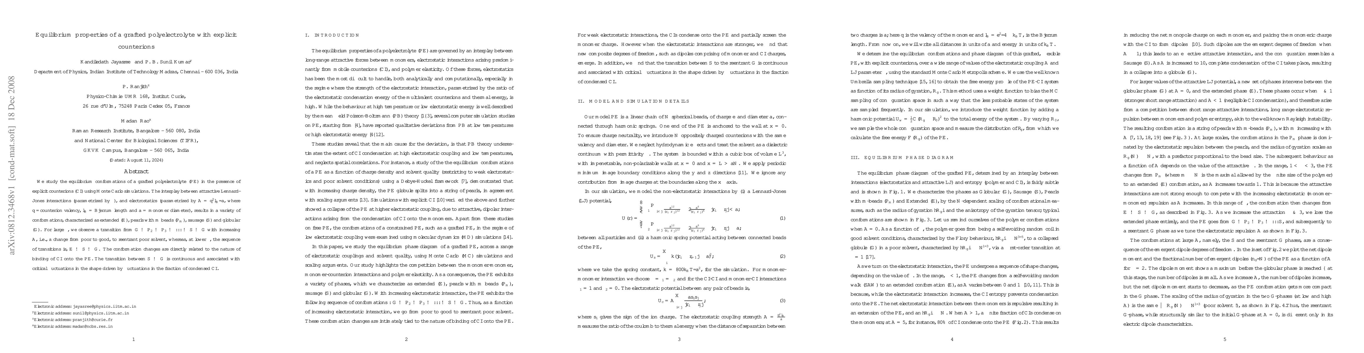 This study uses Monte Carlo simulations to investigate the equilibrium conformations of a grafted polyelectrolyte in the presence of explicit counterions, revealing transitions between extended, pearl, sausage, and globular states driven by the balance of Lennard-Jones interactions and electrostatics. The transitions reflect changes in counterion binding and exhibit critical fluctuations during the sausage-to-globular transition.