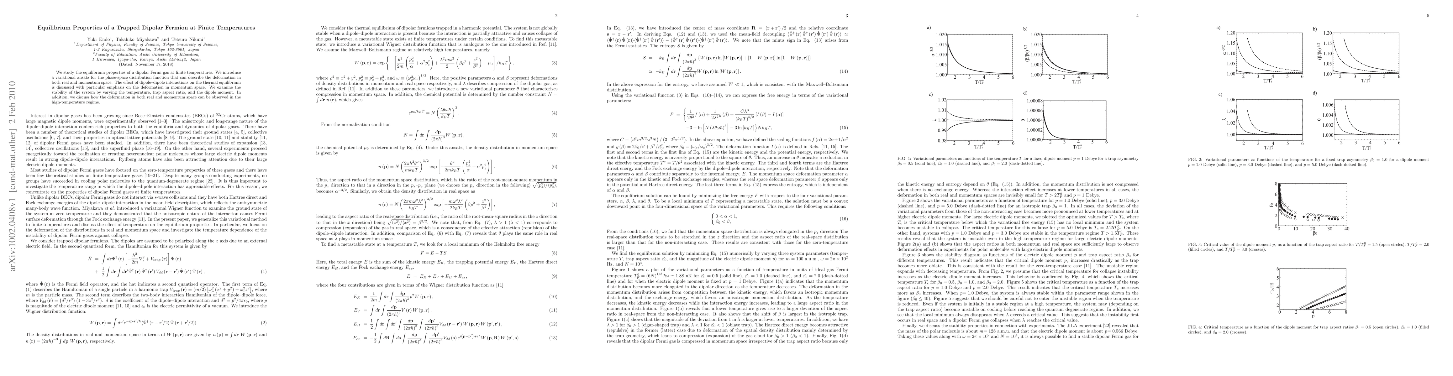 This paper investigates the equilibrium properties of a dipolar Fermi gas at finite temperatures, employing a variational ansatz to describe the phase-space distribution function. It examines the impact of dipole-dipole interactions and analyzes the system's stability under varying temperature, trap aspect ratio, and dipole moment, highlighting observable deformations in real and momentum space at high temperatures.