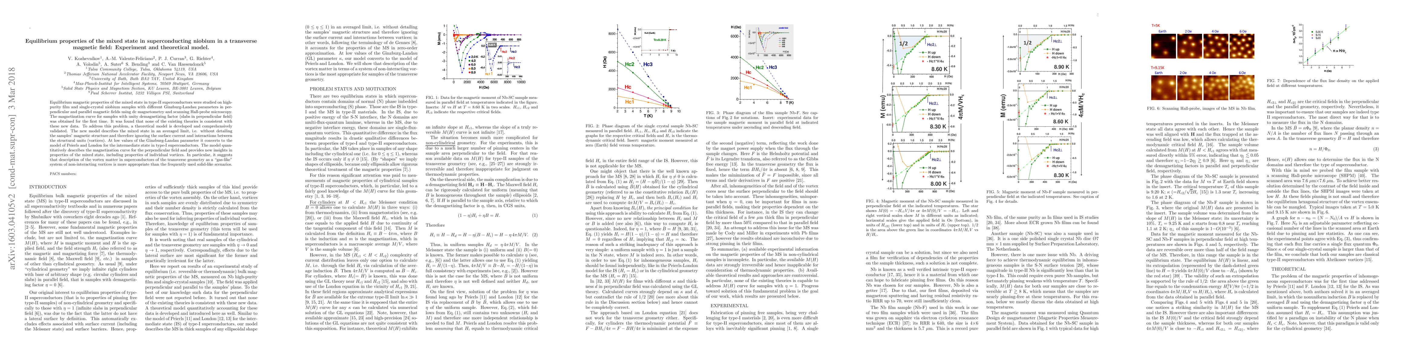Researchers investigated equilibrium magnetic properties of superconducting niobium in transverse magnetic fields using dc magnetometry and scanning Hall-probe microscopy, discovering new data that challenges existing theories. A new theoretical model was developed to describe the mixed state, providing quantitative consistency with experimental data and new insights into vortex properties.