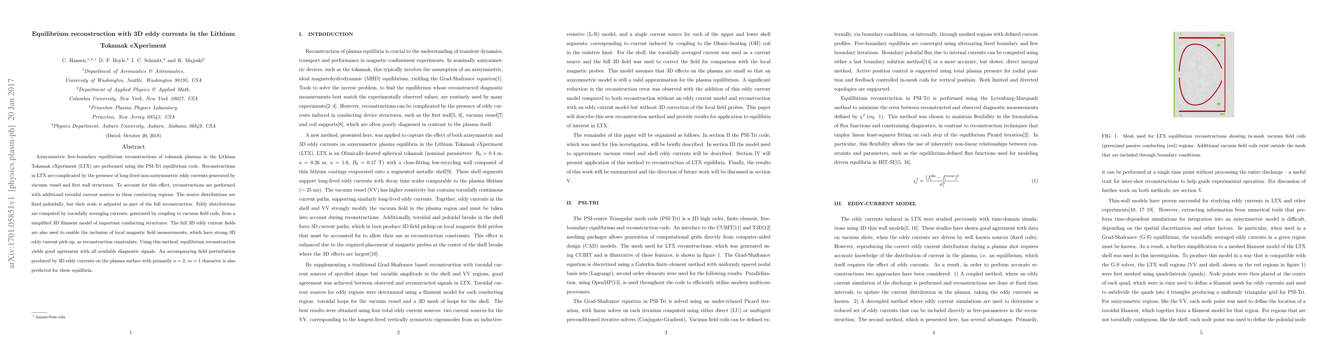 This paper details the use of the PSI-Tri equilibrium code to reconstruct axisymmetric plasma equilibria in the Lithium Tokamak eXperiment (LTX), accounting for long-lived non-axisymmetric eddy currents. The method incorporates 3D eddy current fields generated by vacuum vessel and first wall structures, achieving good agreement with diagnostic measurements.