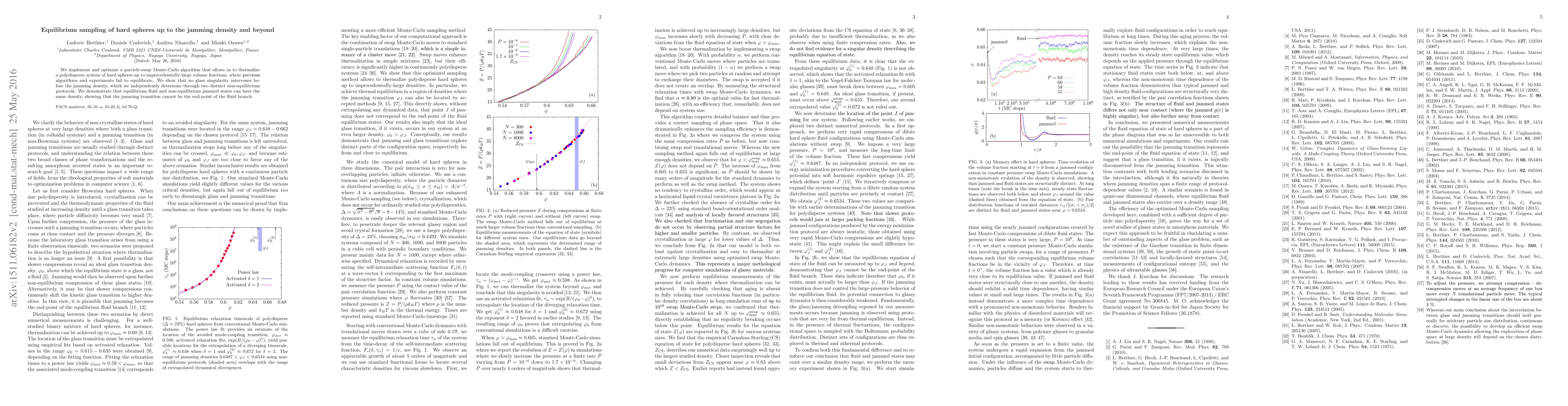 We implement and optimize a particle-swap Monte-Carlo algorithm that allows us to thermalize a polydisperse system of hard spheres up to unprecedentedly-large volume fractions, where \revise{previous} algorithms and experiments fail to equilibrate. We show that no glass singularity intervenes before the jamming density, which we independently determine through two distinct non-equilibrium protocols. We demonstrate that equilibrium fluid and non-equilibrium jammed states can have the same density, showing that the jamming transition cannot be the end-point of the fluid branch.