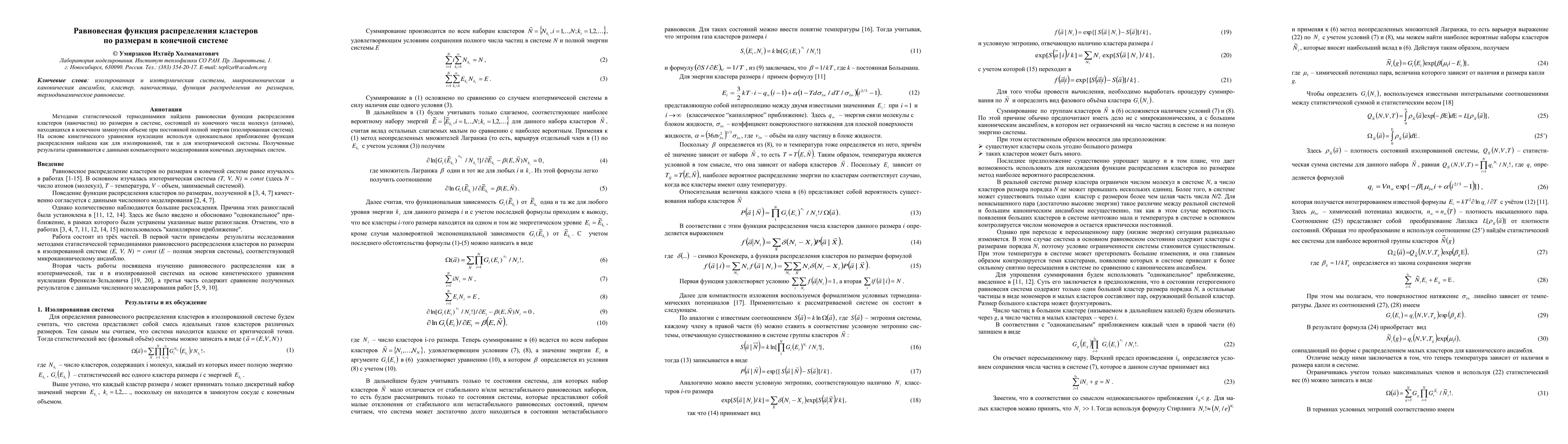 The equilibrium size distribution function of clusters (nanoparticles) in the system of finite number of molecules (atoms) in finite closed volume with constant total energy (isolated system) is found using methods of statistical thermodynamics. The distribution function is found from kinetic equation of nucleation using one-drop approximation for both isothermal and isolated systems. The results obtained are compared with computer simulation data of finite two-dimensional system.
