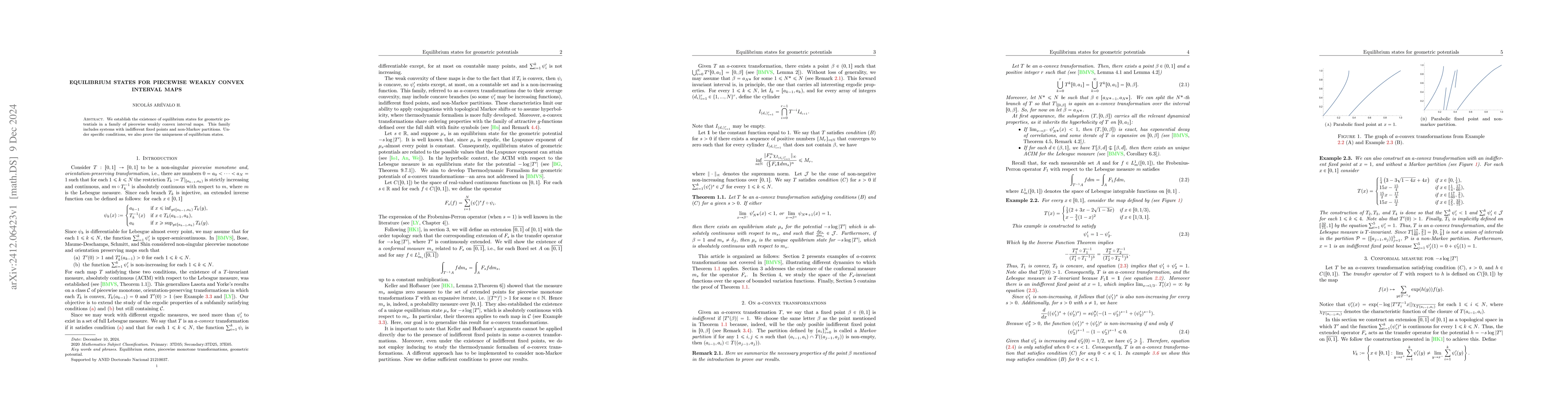 This paper proves the existence of equilibrium states for geometric potentials in a class of piecewise weakly convex interval maps, which can have indifferent fixed points and non-Markov partitions. It also demonstrates the uniqueness of these states under certain conditions.