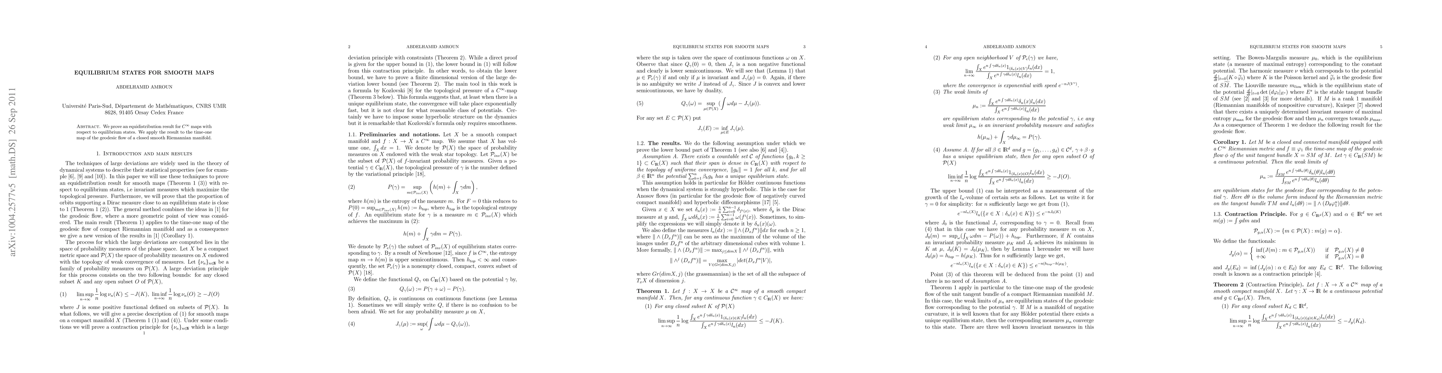 This paper proves an equidistribution theorem for infinitely differentiable maps, applied to the time-one map of geodesic flow on closed smooth Riemannian manifolds, providing insights into equilibrium states' behavior.
