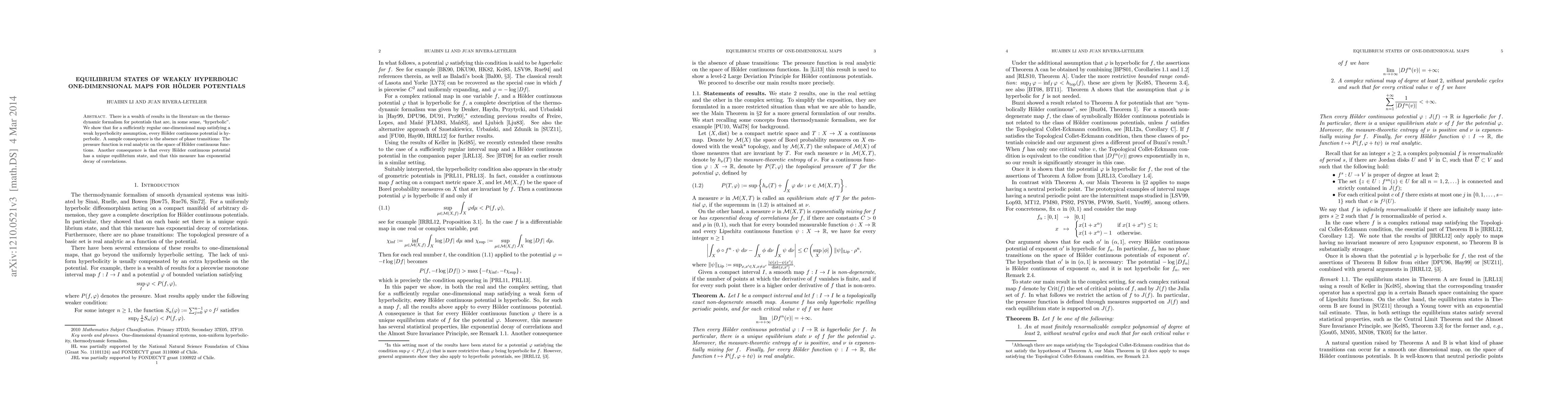 There is a wealth of results in the literature on the thermodynamic formalism for potentials that are, in some sense, "hyperbolic". We show that for a sufficiently regular one-dimensional map satisfying a weak hyperbolicity assumption, every Holder continuous potential is hyperbolic. A sample consequence is the absence of phase transitions: The pressure function is real analytic on the space of Holder continuous functions. Another consequence is that every Holder continuous potential has a unique equilibrium state, and that this measure has exponential decay of correlations.