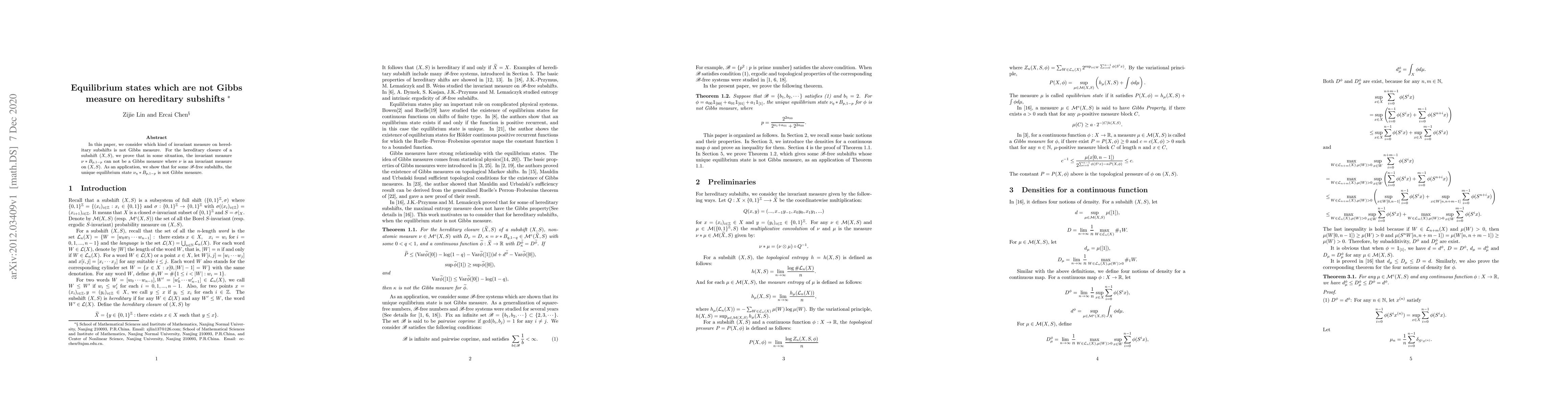 Researchers found that in some cases, an invariant measure on hereditary subshifts cannot be a Gibbs measure, highlighting the complexity of equilibrium states.