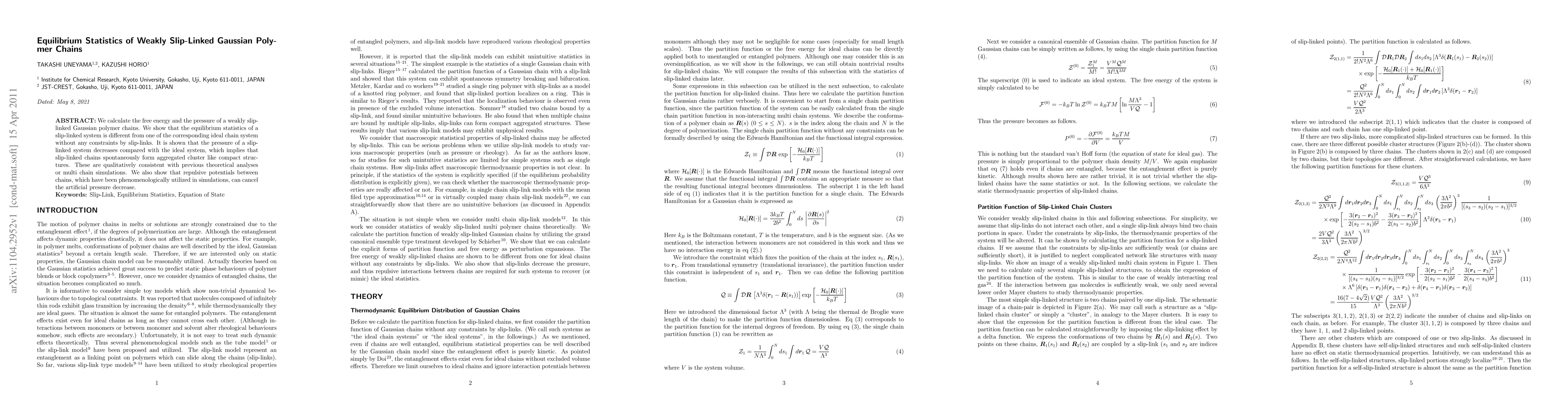 This paper investigates the equilibrium statistics of weakly slip-linked Gaussian polymer chains, revealing that their pressure decreases compared to ideal unconstrained chains, leading to spontaneous formation of compact clusters. It also demonstrates that repulsive potentials between chains can counteract the artificial pressure decrease observed in simulations.