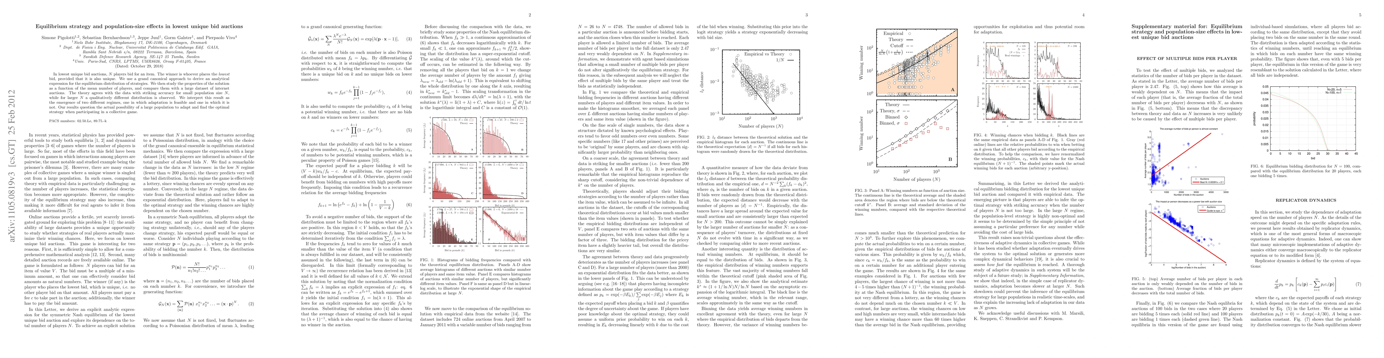 This paper develops an analytical model for the equilibrium strategy in lowest unique bid auctions, showing agreement with empirical data for small populations. It identifies two distinct regimes based on population size, questioning the adaptability of large populations to find optimal strategies in collective games.