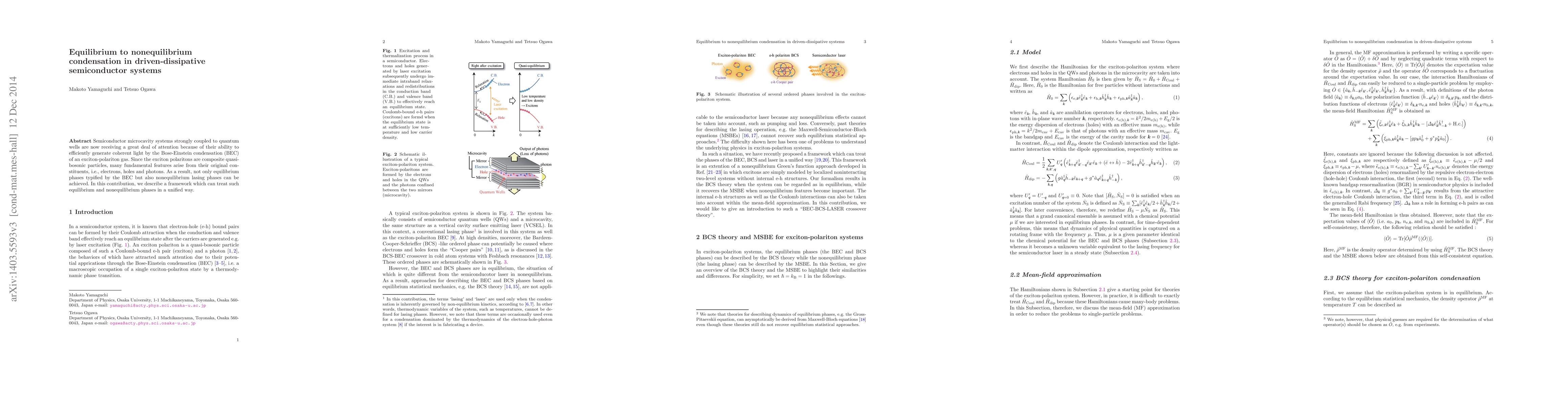 Semiconductor microcavity systems strongly coupled to quantum wells are now receiving a great deal of attention because of their ability to efficiently generate coherent light by the Bose-Einstein condensation (BEC) of an exciton-polariton gas. Since the exciton polaritons are composite quasi-bosonic particles, many fundamental features arise from their original constituents, i.e., electrons, holes and photons. As a result, not only equilibrium phases typified by the BEC but also nonequilibrium lasing phases can be achieved. In this contribution, we describe a framework which can treat such equilibrium and nonequilibrium phases in a unified way.