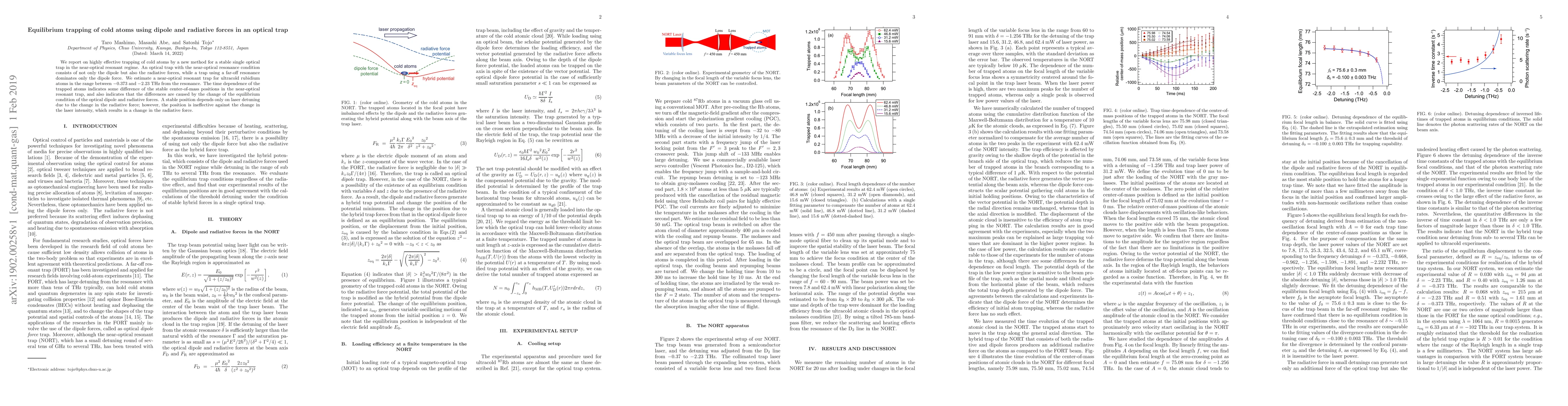 This paper presents a novel method for trapping cold atoms using both dipole and radiative forces in an optical trap operating near the optical resonance. The study finds that near-resonant trapping conditions lead to more stable atom positions compared to far-off resonance traps, which rely primarily on dipole forces.