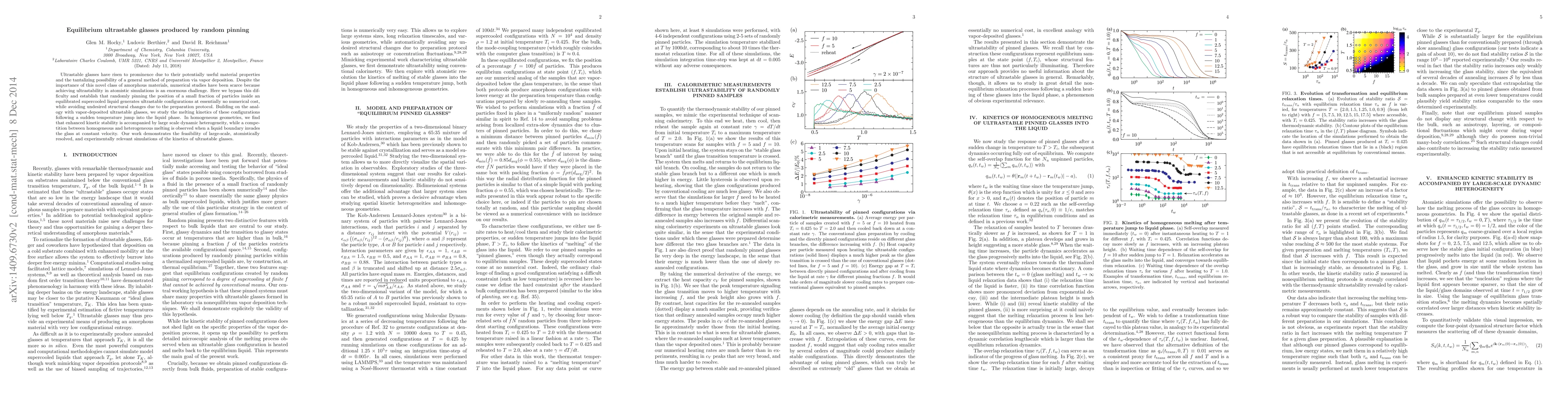 This study introduces a method to produce ultrastable glasses by randomly pinning a small fraction of particles in an equilibrated supercooled liquid, achieving stability without structural changes. The research highlights the kinetic stability and dynamic heterogeneity of these glasses, providing a feasible approach for large-scale simulations of their melting behavior.
