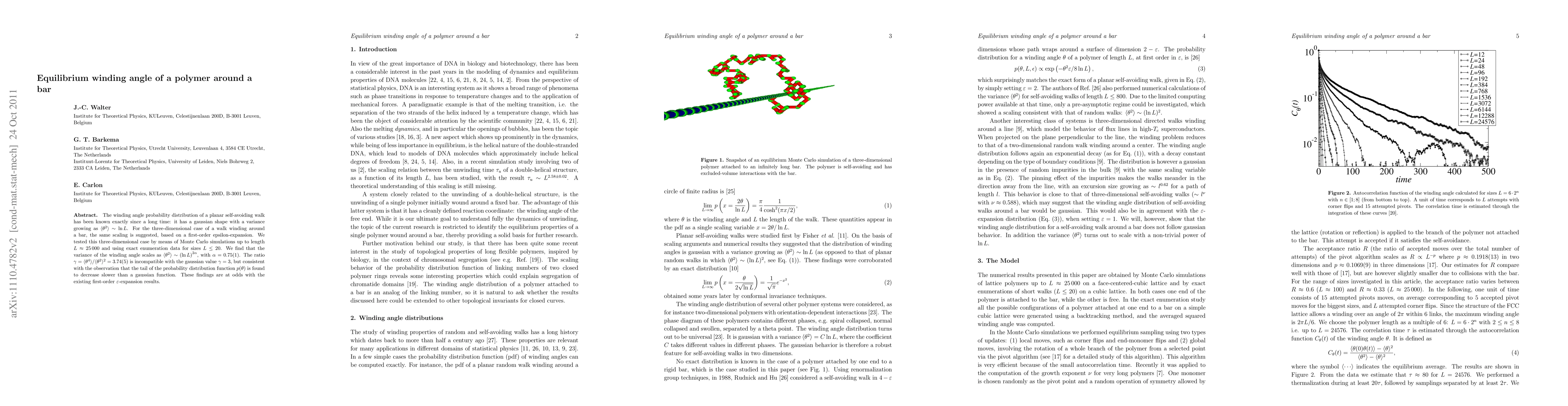 Researchers found that the variance of a polymer's winding angle around a bar scales as π(η∞ 2) in three dimensions, contradicting existing first-order epsilon-expansion results, and indicates a slower tail decrease than expected.