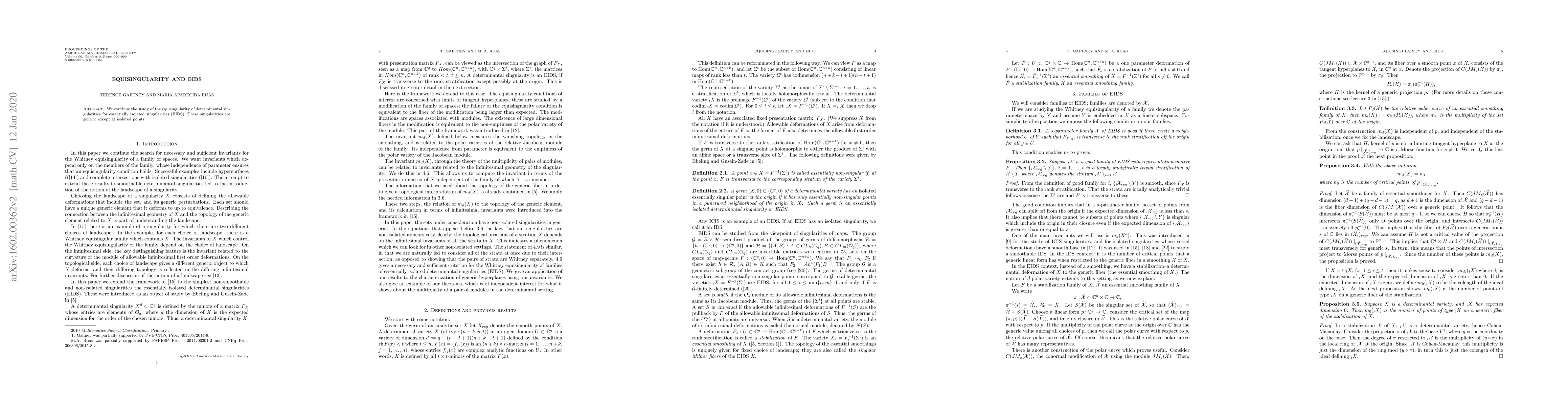 The study of Essentially Isolated Determinantal Singularites or EIDS was initiated by Ebeling and Gusein-Zade. They are non-smoothable as determinantal singularities, and in general have non-isolated singularities. Their singularities are generic in a deleted neighborhood of the origin, hence their description as "essentially isolated". In this paper we study these singularities from the "landscape" point of view introduced in MathArxiv 1501.00201. Using this point of view we show a connection between invariants coming from the topology of the stabilization and invariants coming from the infinitesimal geometry of the singularity. This gives us a criterion for the Whitney equisingularity of EIDS families.