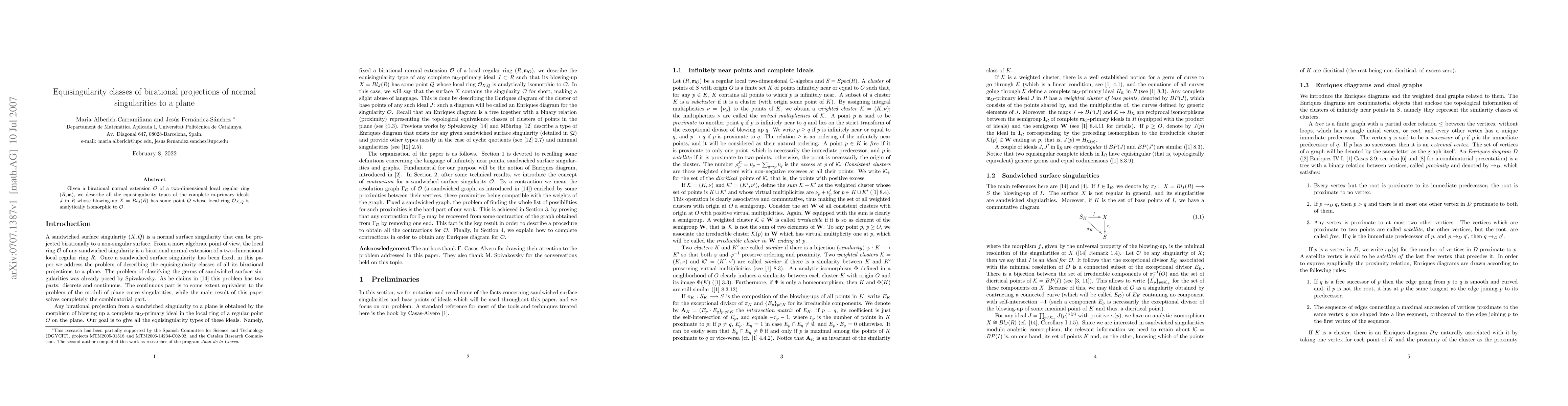 Given a birational normal extension S of a two-dimensional local regular ring R, we describe all the equisingularity types of the complete ideals J in R whose blowing-up has some point at which the local ring is analytically isomorphic to S. The problem of classifying the germs of such normal surface singularities was already posed by Spivakovsky (Ann. of Math. 1990). This problem has two parts: discrete and continous. The continous part is to some extent equivalent to the problem of the moduli of plane curve singularities, while the main result of this paper solves completely the discrete part.