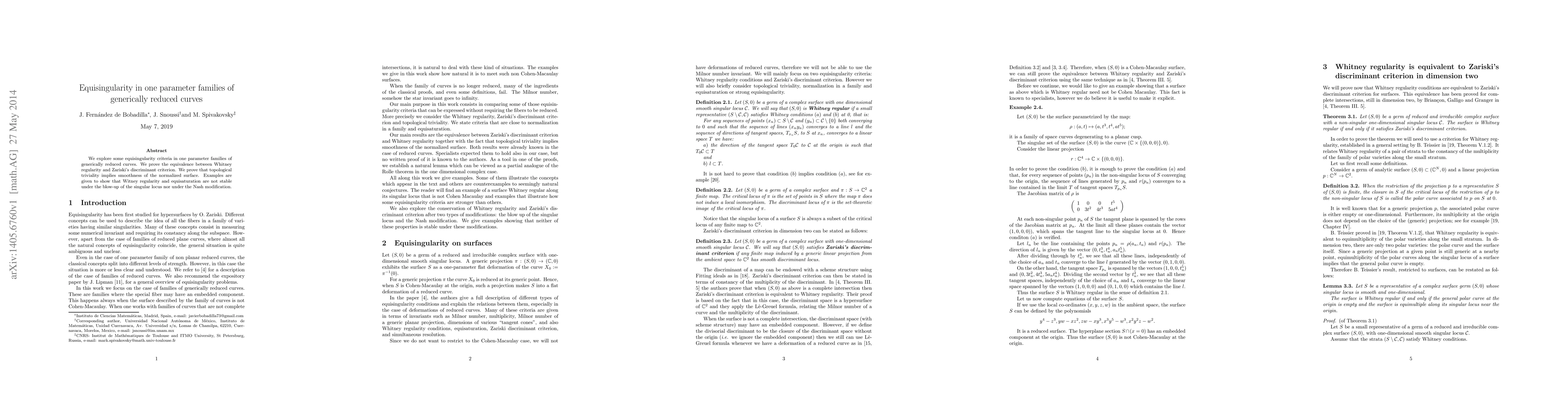 This paper investigates equisingularity criteria in one-parameter families of generically reduced curves, establishing the equivalence between Whitney regularity and Zariski's discriminant criterion, and proving that topological triviality leads to smoothness of the normalized surface. It also provides examples demonstrating the instability of Whitney regularity and equisaturation under certain modifications.