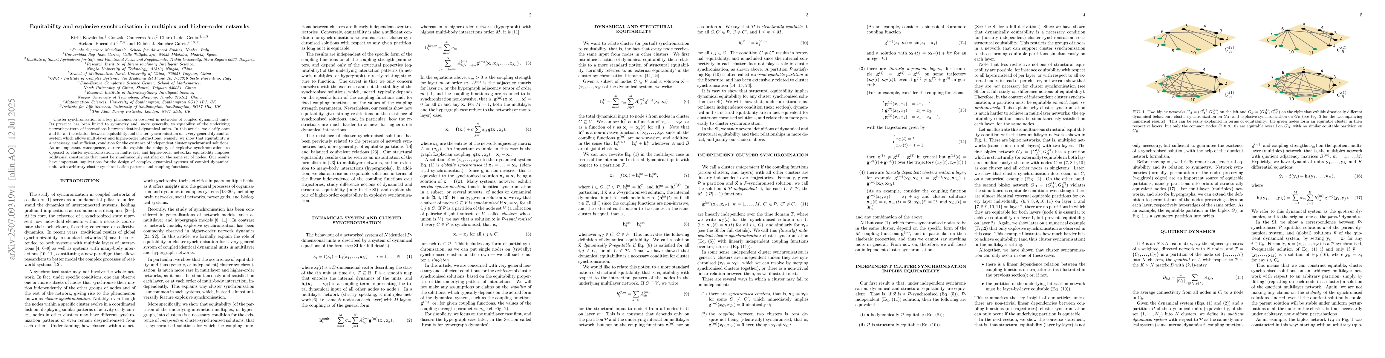 Cluster synchronisation is a key phenomenon observed in networks of coupled dynamical units. Its presence has been linked to symmetry and, more generally, to equability of the underlying network pattern of interactions between identical dynamical units. In this article, we clarify once and for all the relation between equitability and cluster synchronisation on a very general dynamical system which allows multi-layer and higher-order interactions. Namely, we show that equitability is a necessary, and sufficient, condition for the existence of independent cluster synchronised solutions. As an important consequence, our results explain the ubiquity of explosive synchronisation, as opposed to cluster synchronisation, in multi-layer and higher-order networks: equitability imposes additional constraints that must be simultaneously satisfied on the same set of nodes. Our results have important implications for the design of complex dynamical systems of coupled dynamical units with arbitrary cluster synchronisation patterns and coupling functions.