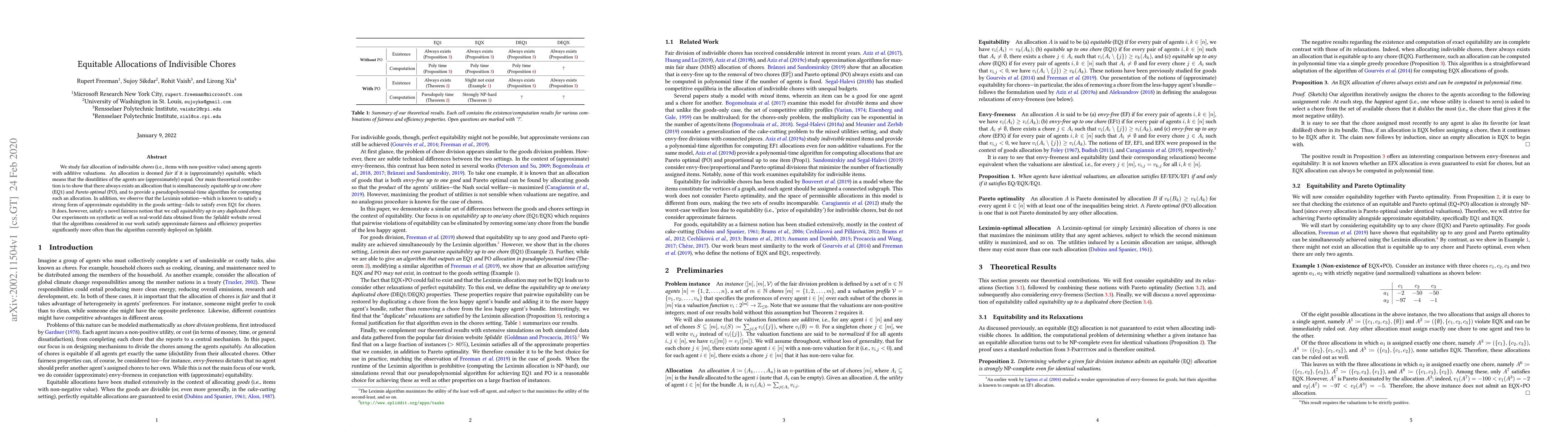 This paper explores fair allocation of indivisible chores among agents with additive valuations, demonstrating the existence of an equitable and Pareto optimal allocation up to one chore. It introduces a new fairness notion and shows that the proposed algorithm outperforms the current method in terms of fairness and efficiency.