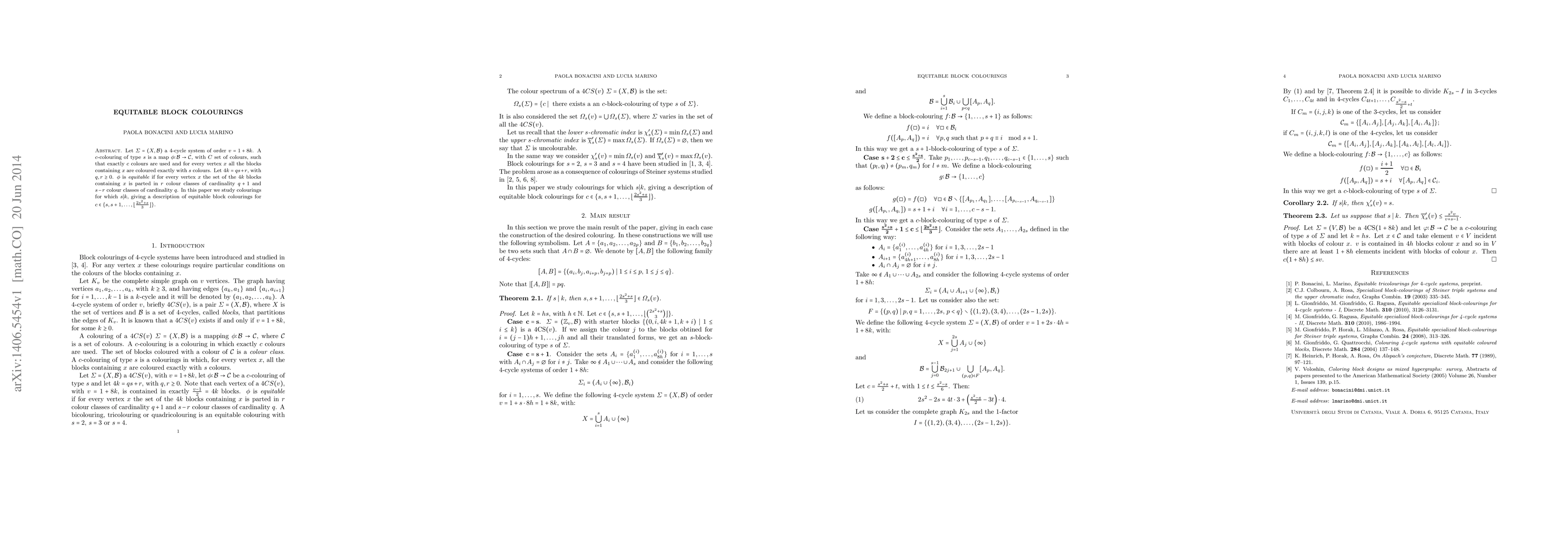 Researchers describe a condition for equitable block colorings in 4-cycle systems with specific constraints on coloring parameters, providing insight into optimal color distributions.