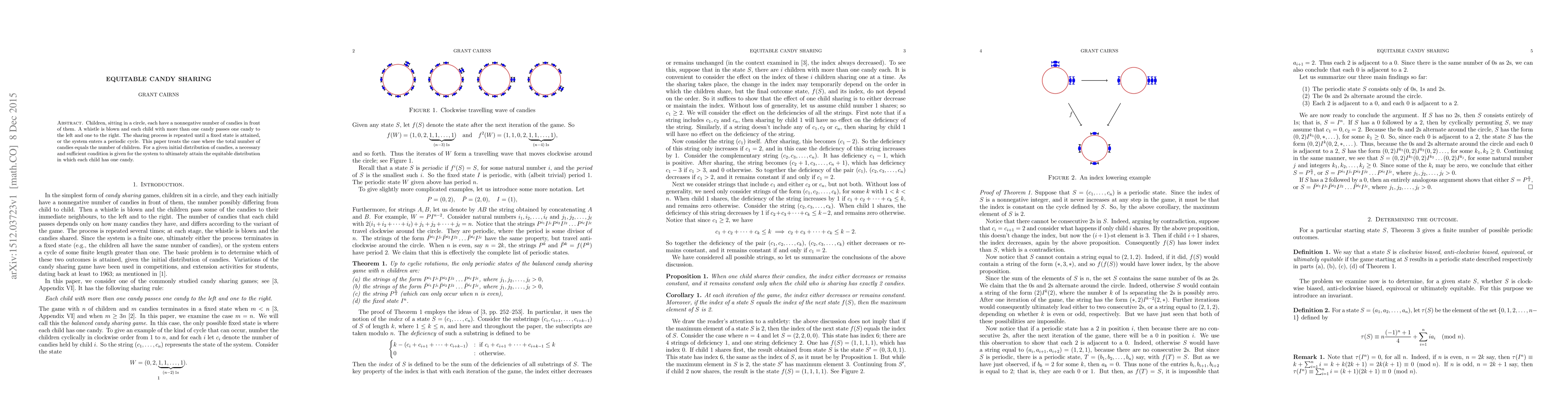 This paper investigates the equitable sharing of candies among children until each has one candy, given that the total number of candies equals the number of children. It provides a necessary and sufficient condition for the system to reach an equitable distribution without entering a periodic cycle.