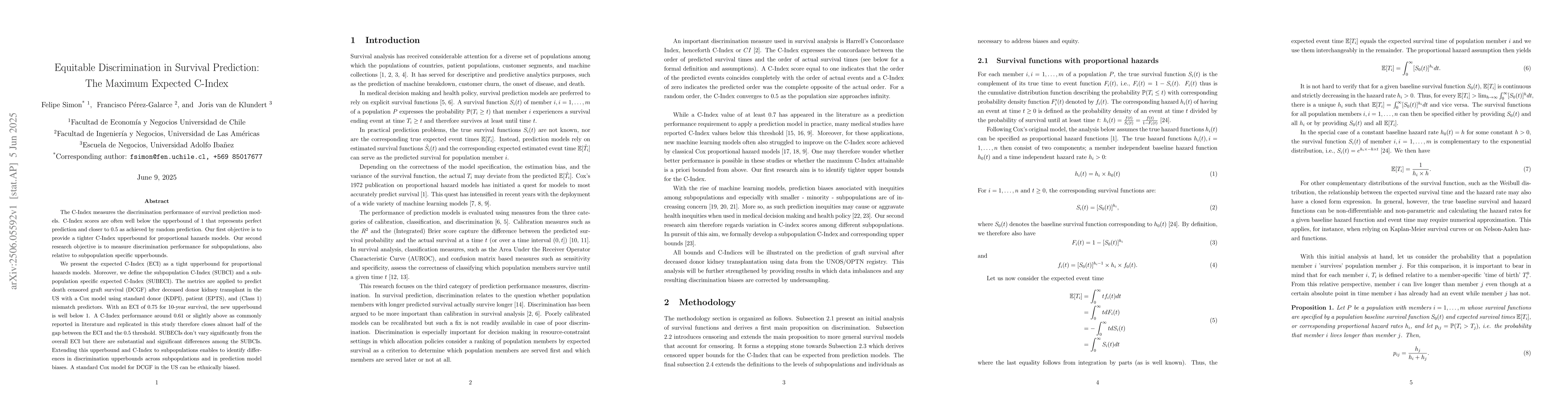 The C-Index measures the discrimination performance of survival prediction models. C-Index scores are often well below the upperbound of 1 that represents perfect prediction and closer to 0.5 as achieved by random prediction. Our first objective is to provide a tighter C-Index upperbound for proportional hazards models. Our second research objective is to measure discrimination performance for subpopulations, also relative to subpopulation specific upperbounds. We present the expected C-Index (ECI) as a tight upperbound for proportional hazards models. Moreover, we define the subpopulation C-Index (SUBCI) and a sub-population specific expected C-Index (SUBECI). The metrics are applied to predict death censored graft survival (DCGF) after deceased donor kidney transplant in the US with a Cox model using standard donor (KDPI), patient (EPTS), and (Class 1) mismatch predictors. With an ECI of 0.75 for 10-year survival, the new upperbound is well below 1. A C-Index performance around 0.61 or slightly above as commonly reported in literature and replicated in this study therefore closes almost half of the gap between the ECI and the 0.5 threshold. SUBECIs don't vary significantly from the overall ECI but there are substantial and significant differences among the SUBCIs. Extending this upperbound and C-Index to subpopulations enables to identify differences in discrimination upperbounds across subpopulations and in prediction model biases. A standard Cox model for DCGF in the US can be ethnically biased.