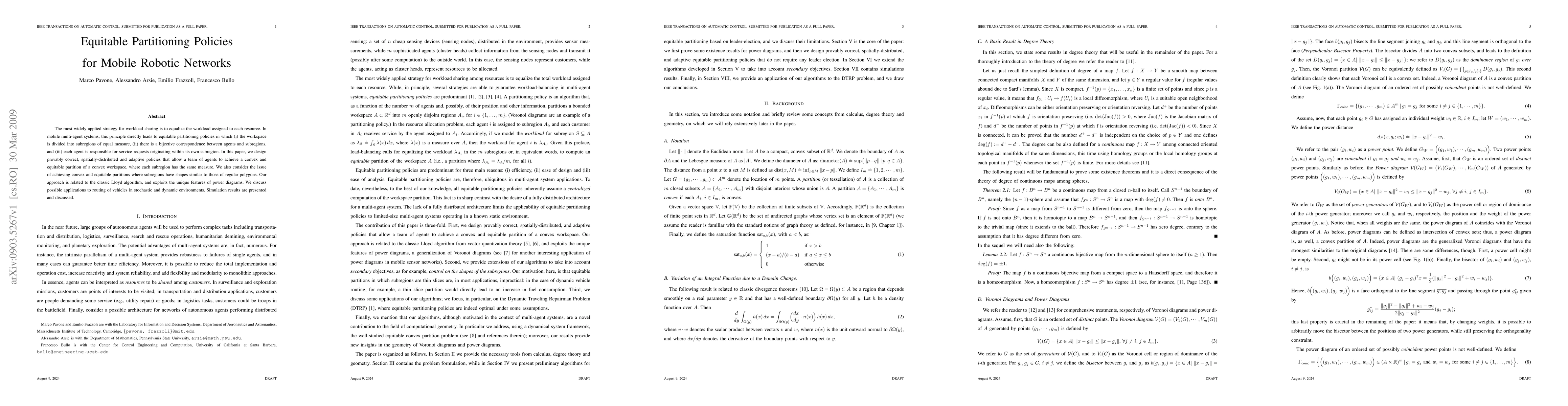 The most widely applied strategy for workload sharing is to equalize the workload assigned to each resource. In mobile multi-agent systems, this principle directly leads to equitable partitioning policies in which (i) the workspace is divided into subregions of equal measure, (ii) there is a bijective correspondence between agents and subregions, and (iii) each agent is responsible for service requests originating within its own subregion. In this paper, we design provably correct, spatially-distributed and adaptive policies that allow a team of agents to achieve a convex and equitable partition of a convex workspace, where each subregion has the same measure. We also consider the issue of achieving convex and equitable partitions where subregions have shapes similar to those of regular polygons. Our approach is related to the classic Lloyd algorithm, and exploits the unique features of power diagrams. We discuss possible applications to routing of vehicles in stochastic and dynamic environments. Simulation results are presented and discussed.