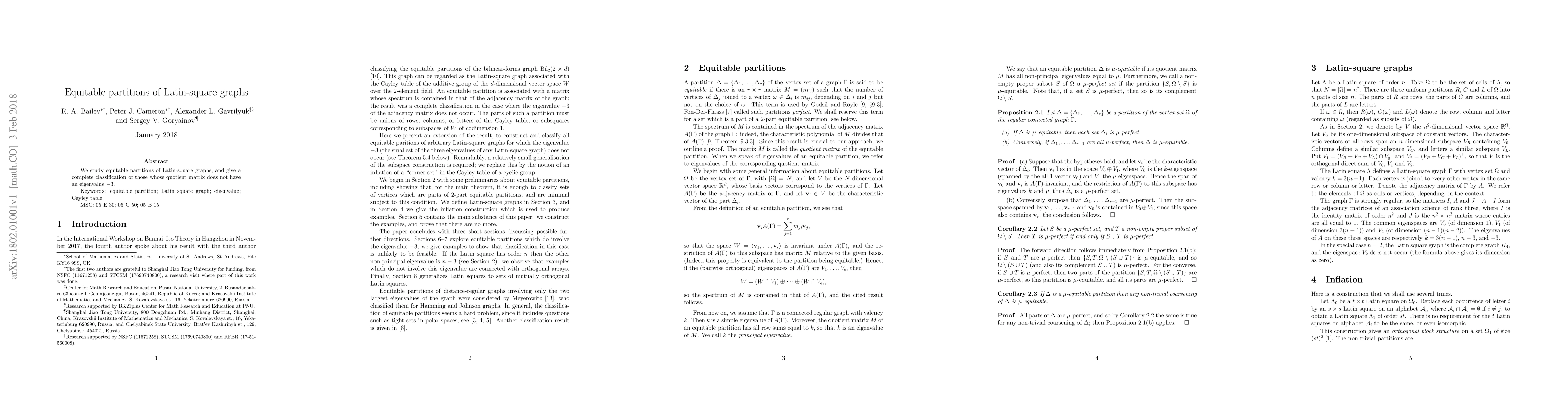 Summary: This paper classifies equitable partitions of Latin-square graphs, focusing on those without a quotient matrix eigenvalue of $-3$, providing a comprehensive categorization of such partitions.