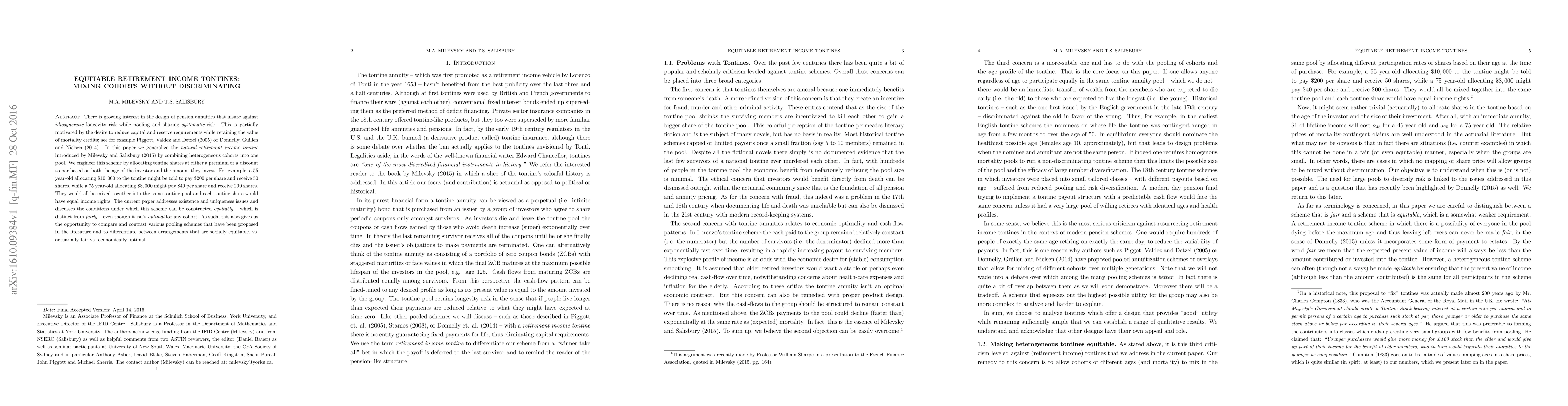 There is growing interest in the design of pension annuities that insure against idiosyncratic longevity risk while pooling and sharing systematic risk. This is partially motivated by the desire to reduce capital and reserve requirements while retaining the value of mortality credits; see for example Piggott, Valdez and Detzel (2005) or Donnelly, Guillen and Nielsen (2014). In this paper we generalize the natural retirement income tontine introduced by Milevsky and Salisbury (2015) by combining heterogeneous cohorts into one pool. We engineer this scheme by allocating tontine shares at either a premium or a discount to par based on both the age of the investor and the amount they invest. For example, a 55 year-old allocating $\$10,000$ to the tontine might be told to pay $\$$200 per share and receive 50 shares, while a 75 year-old allocating $\$8,000$ might pay $\$$40 per share and receive 200 shares. They would all be mixed together into the same tontine pool and each tontine share would have equal income rights. The current paper addresses existence and uniqueness issues and discusses the conditions under which this scheme can be constructed equitably -- which is distinct from fairly -- even though it isn't optimal for any cohort. As such, this also gives us the opportunity to compare and contrast various pooling schemes that have been proposed in the literature and to differentiate between arrangements that are socially equitable, vs. actuarially fair vs. economically optimal.