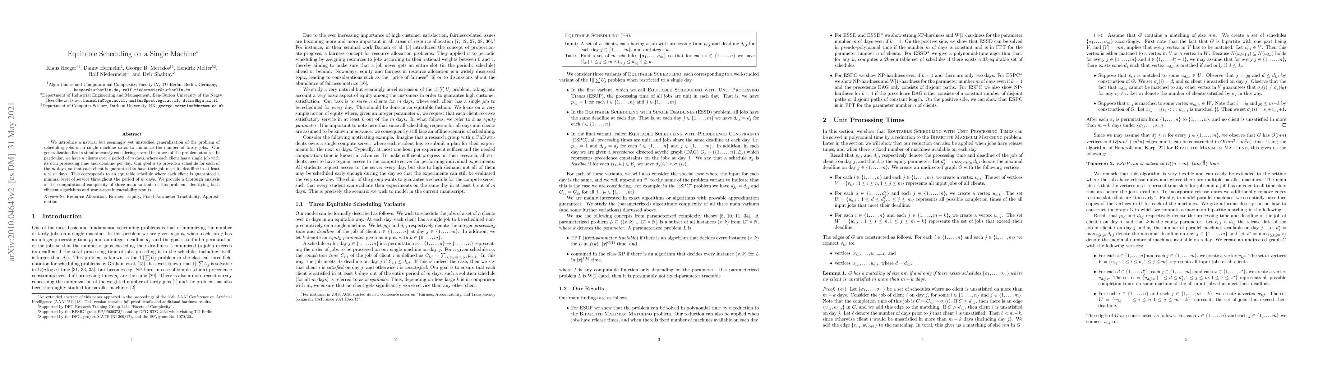 We introduce a natural but seemingly yet unstudied generalization of the problem of scheduling jobs on a single machine so as to minimize the number of tardy jobs. Our generalization lies in simultaneously considering several instances of the problem at once. In particular, we have $n$ clients over a period of $m$ days, where each client has a single job with its own processing time and deadline per day. Our goal is to provide a schedule for each of the $m$ days, so that each client is guaranteed to have their job meet its deadline in at least $k \le m$ days. This corresponds to an equitable schedule where each client is guaranteed a minimal level of service throughout the period of $m$ days. We provide a thorough analysis of the computational complexity of three main variants of this problem, identifying both efficient algorithms and worst-case intractability results.