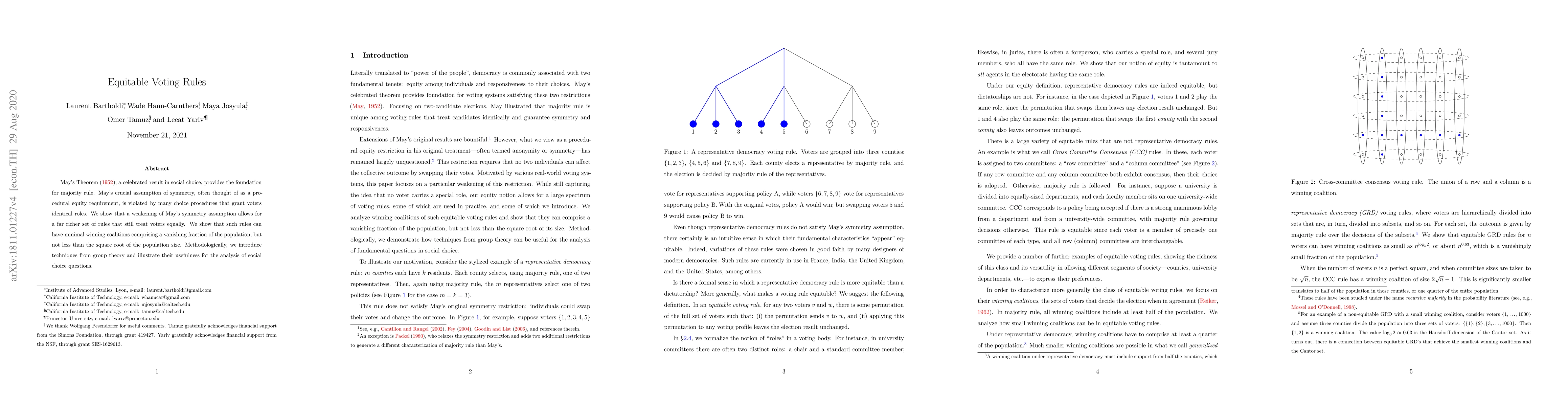 This paper introduces voting rules that treat voters equally despite violating May's symmetry assumption, allowing for minimal winning coalitions that can comprise a small fraction of the population.