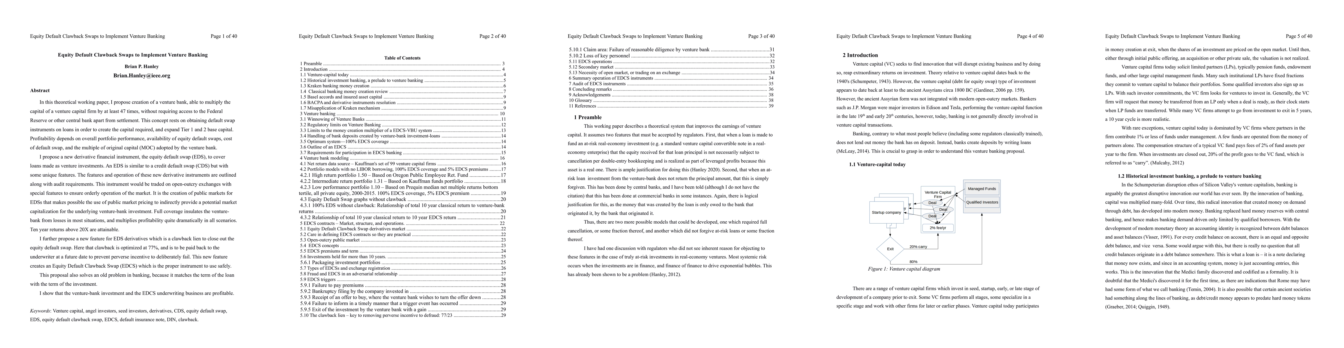 This paper proposes a venture bank model that leverages equity default clawback swaps to amplify venture capital firm capital by up to 20 times without central bank involvement. The venture bank uses equity default swaps to create capital and mitigate risks, with a new derivative instrument, the equity default clawback swap, ensuring profitability and aligning loan terms with investment durations.