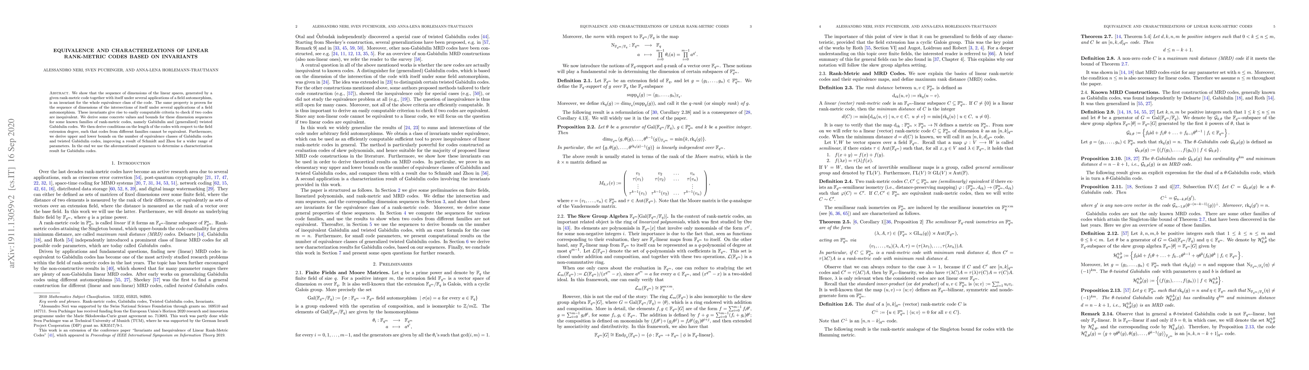 This paper establishes invariants based on dimension sequences for linear rank-metric codes under field automorphisms, providing criteria for code equivalence. It also derives bounds for these sequences in specific code families and characterizes Gabidulin codes using these invariants.