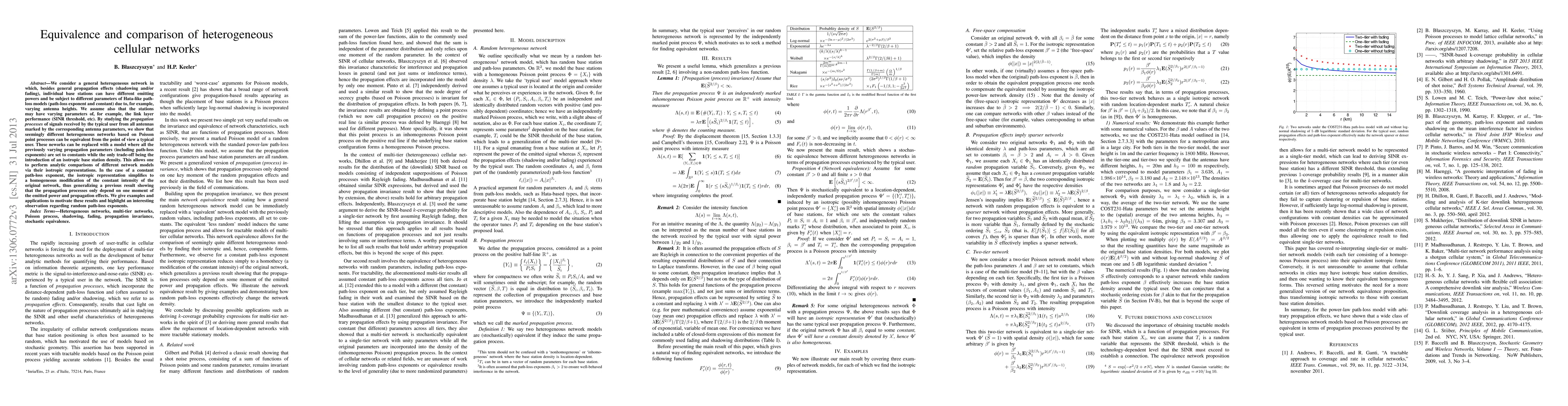 We consider a general heterogeneous network in which, besides general propagation effects (shadowing and/or fading), individual base stations can have different emitting powers and be subject to different parameters of Hata-like path-loss models (path-loss exponent and constant) due to, for example, varying antenna heights. We assume also that the stations may have varying parameters of, for example, the link layer performance (SINR threshold, etc). By studying the propagation processes of signals received by the typical user from all antennas marked by the corresponding antenna parameters, we show that seemingly different heterogeneous networks based on Poisson point processes can be equivalent from the point of view a typical user. These neworks can be replaced with a model where all the previously varying propagation parameters (including path-loss exponents) are set to constants while the only trade-off being the introduction of an isotropic base station density. This allows one to perform analytic comparisons of different network models via their isotropic representations. In the case of a constant path-loss exponent, the isotropic representation simplifies to a homogeneous modification of the constant intensity of the original network, thus generalizing a previous result showing that the propagation processes only depend on one moment of the emitted power and propagation effects. We give examples and applications to motivate these results and highlight an interesting observation regarding random path-loss exponents.