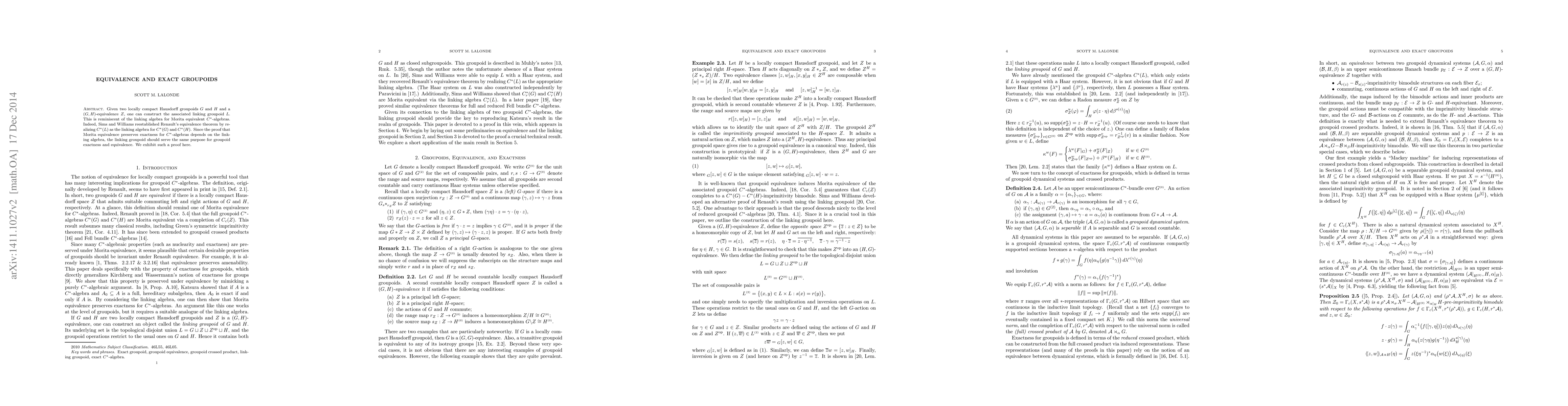 Given two locally compact Hausdorff groupoids $G$ and $H$ and a $(G,H)$-equivalence $Z$, one can construct the associated linking groupoid $L$. This is reminiscent of the linking algebra for Morita equivalent $C^*$-algebras. Indeed, Sims and Williams reestablished Renault's equivalence theorem by realizing $C^*(L)$ as the linking algebra for $C^*(G)$ and $C^*(H)$. Since the proof that Morita equivalence preserves exactness for $C^*$-algebras depends on the linking algebra, the linking groupoid should serve the same purpose for groupoid exactness and equivalence. We exhibit such a proof here.
