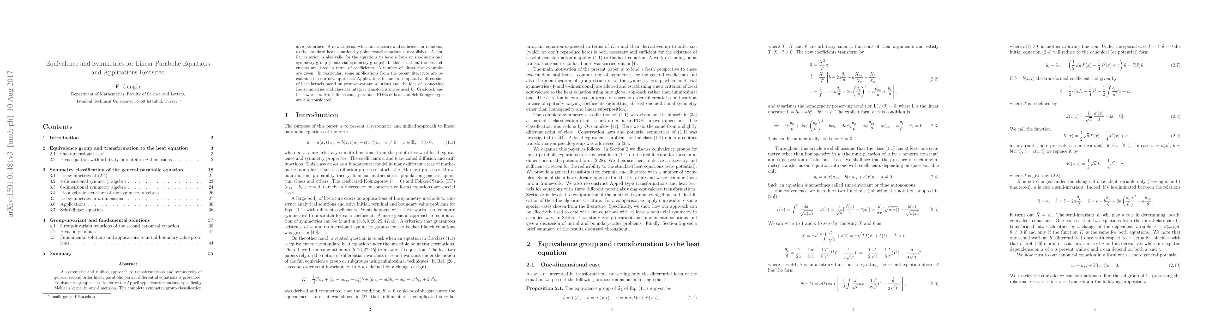 This research systematically explores transformations and symmetries of general second-order linear parabolic equations, deriving Appell type transformations and Mehler's kernel in any dimension using equivalence groups. It establishes criteria for reduction to the standard heat equation and for equations to possess four- or six-dimensional symmetry groups, listing basis elements in terms of coefficients. The paper also revisits applications from recent literature, such as comparing heat kernels based on group-invariant solutions and linking Lie symmetries with integral transforms. It extends the analysis to multidimensional parabolic PDEs of heat and Schrödinger types.