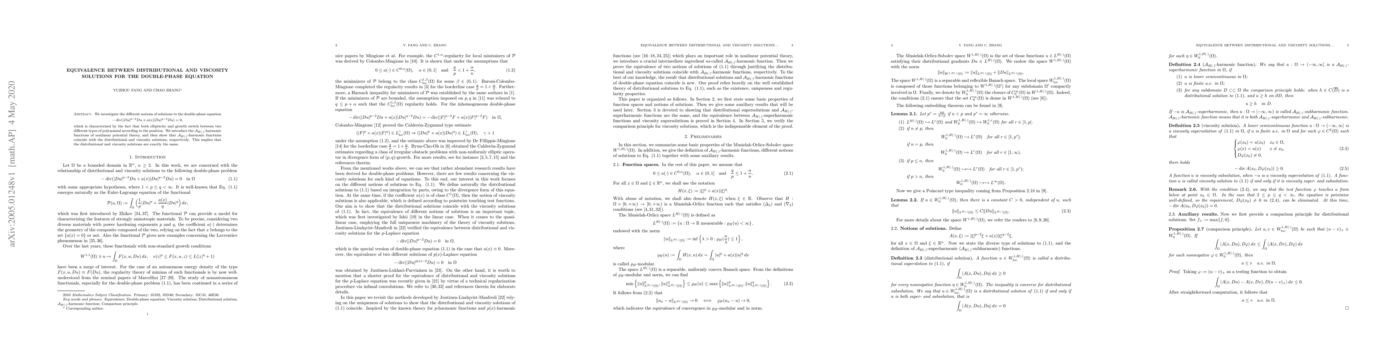 This paper demonstrates that the $\mathcal{A}_{H(\cdot)}$-harmonic functions are equivalent to both distributional and viscosity solutions for the double-phase equation, proving that these solution concepts are identical.
