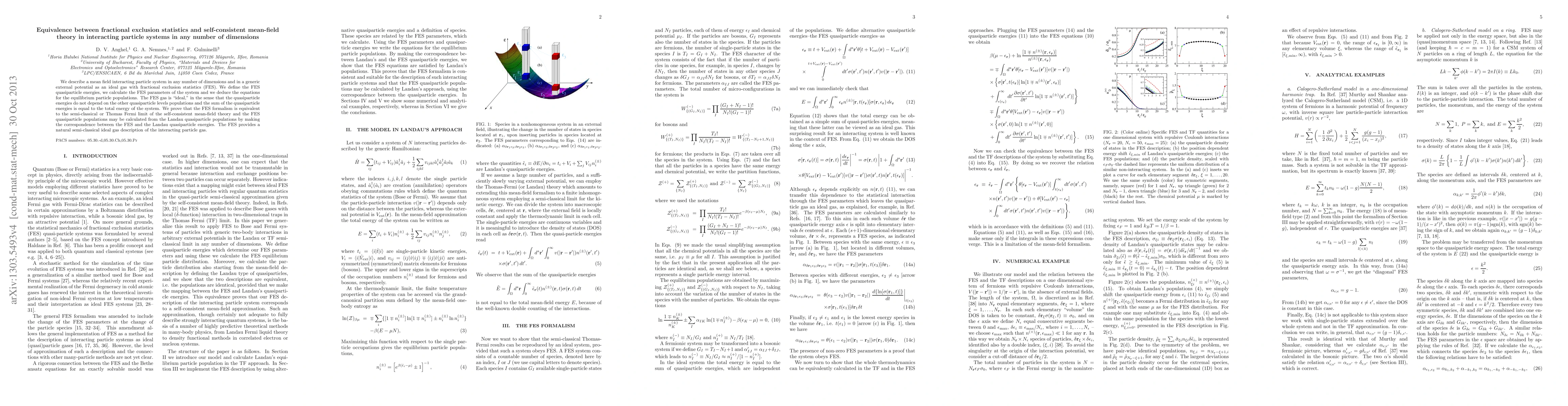 This paper establishes the equivalence between fractional exclusion statistics (FES) and self-consistent mean-field theory in interacting particle systems across any dimension. It shows that FES provides an ideal gas description where quasiparticle energies are independent of population, and proves its equivalence to the semi-classical limit of mean-field theory.