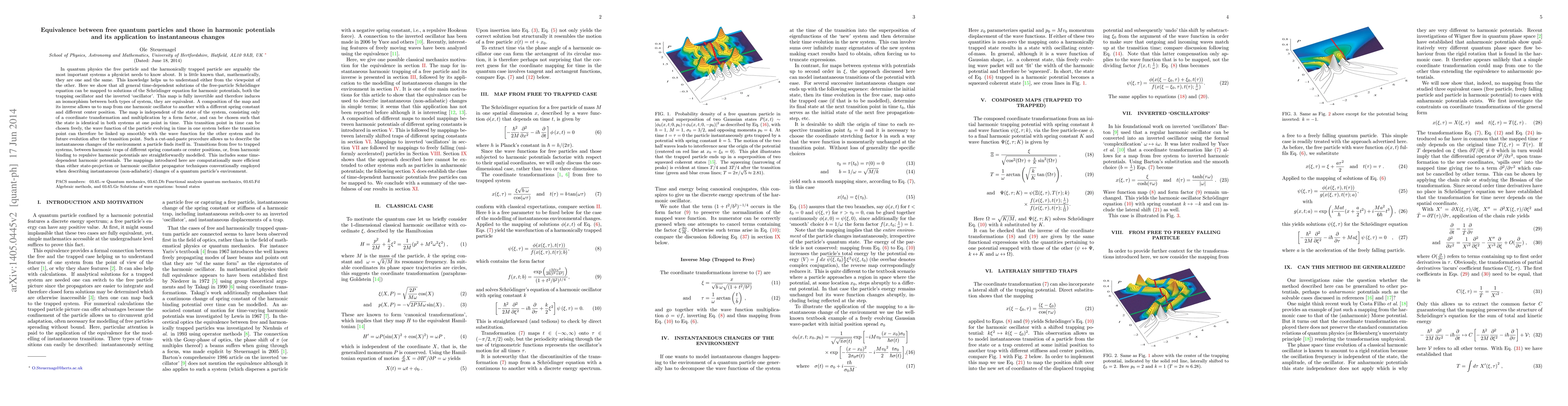 In quantum physics the free particle and the harmonically trapped particle are arguably the most important systems a physicist needs to know about. It is little known that, mathematically, they are one and the same. This knowledge helps us to understand either from the viewpoint of the other. Here we show that all general time-dependent solutions of the free-particle Schroedinger equation can be mapped to solutions of the Schroedinger equation for harmonic potentials, both the trapping oscillator and the inverted 'oscillator'. This map is fully invertible and therefore induces an isomorphism between both types of system, they are equivalent. A composition of the map and its inverse allows us to map from one harmonic oscillator to another with a different spring constant and different center position. The map is independent of the state of the system, consisting only of a coordinate transformation and multiplication by a form factor, and can be chosen such that the state is identical in both systems at one point in time. This transition point in time can be chosen freely, the wave function of the particle evolving in time in one system before the transition point can therefore be linked up smoothly with the wave function for the other system and its future evolution after the transition point. Such a cut-and-paste procedure allows us to describe the instantaneous changes of the environment a particle finds itself in. Transitions from free to trapped systems, between harmonic traps of different spring constants or center positions, or, from harmonic binding to repulsive harmonic potentials are straightforwardly modelled. This includes some time-dependent harmonic potentials. The mappings introduced here are computationally more efficient than either state-projection or harmonic oscillator propagator techniques conventionally employed when describing instantaneous (non-a 1,920 characters