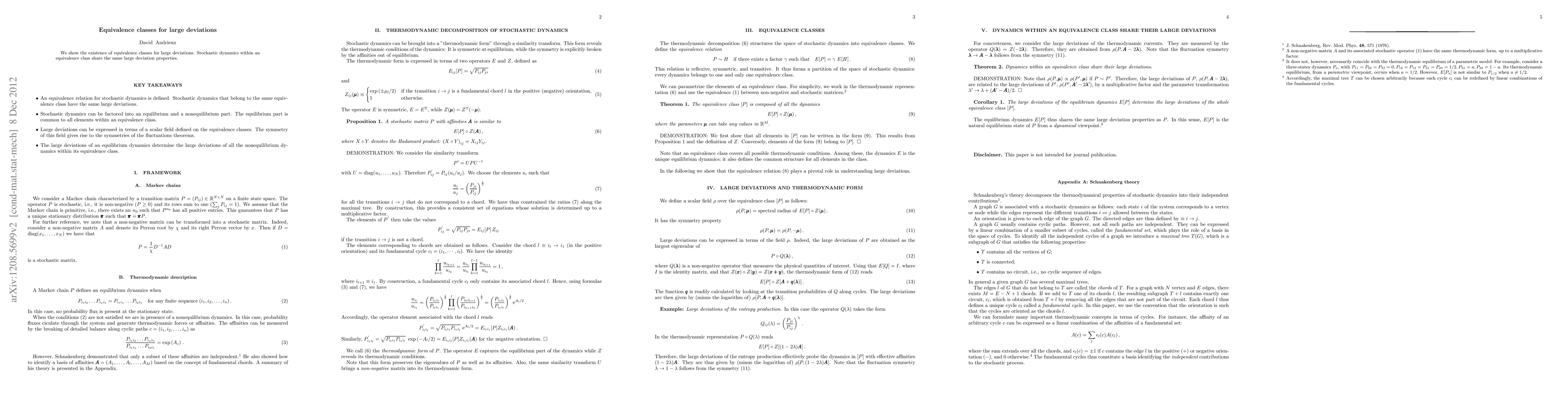 We show the existence of equivalence classes for large deviations. Stochastic dynamics within an equivalence class share the same large deviation properties.