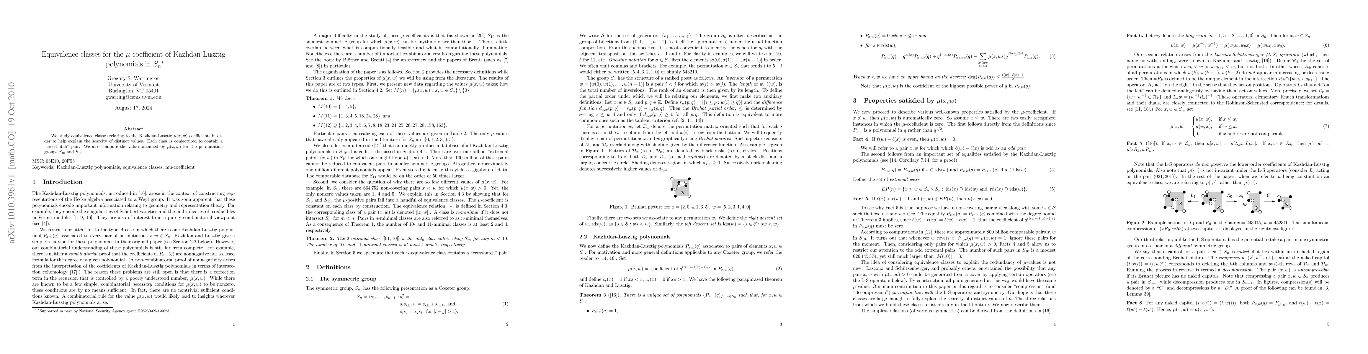 This research investigates equivalence classes for Kazhdan-Lusztig mu-coefficients in S_n, suggesting each class contains a 'crosshatch' pair. The study also calculates mu(x,w) values for S_10 and S_11, aiming to explain the limited distinct mu-coefficient values.