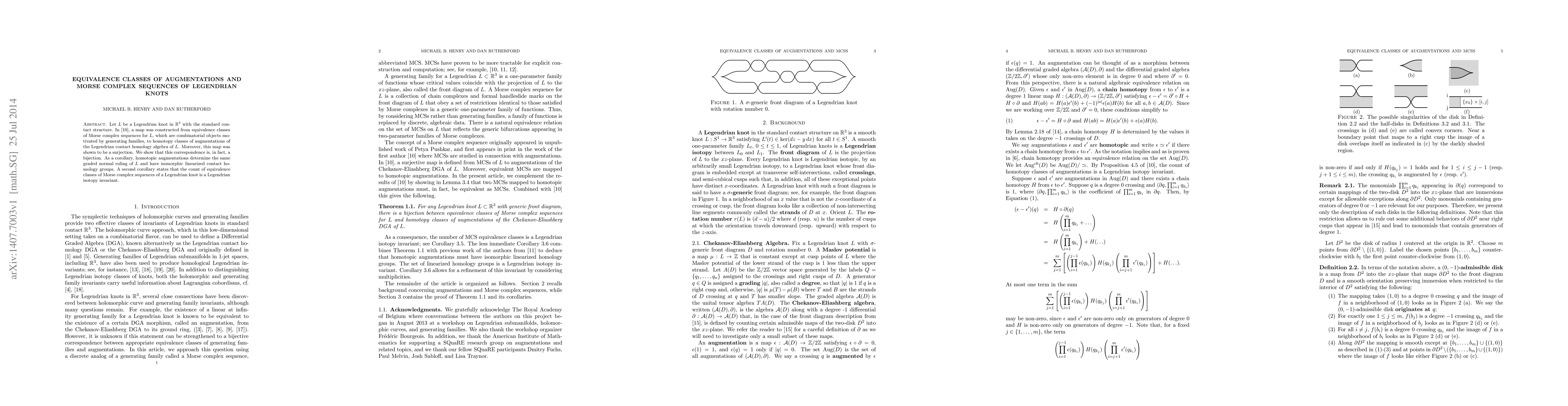 This paper demonstrates that the correspondence between equivalence classes of Morse complex sequences for a Legendrian knot and homotopy classes of augmentations of its contact homology algebra is a bijection, implying homotopic augmentations yield the same graded normal ruling and isomorphic linearized contact homology groups. Additionally, it proves that the count of these equivalence classes is a Legendrian isotopy invariant.