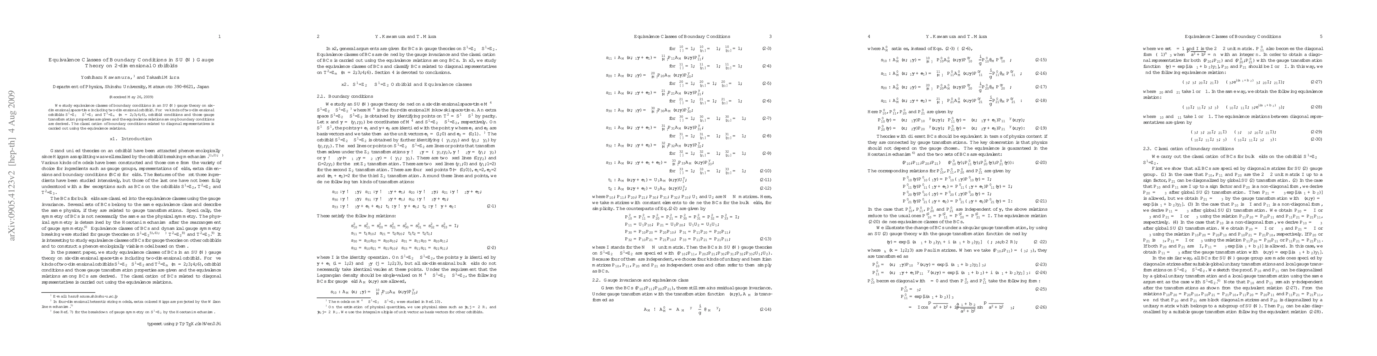 This paper classifies equivalence classes of boundary conditions in SU(N) gauge theory on six-dimensional space-time with two-dimensional orbifolds, including $S^1/Z_2 \times S^1/Z_2$ and $T^2/Z_m$. It derives equivalence relations and uses them to classify boundary conditions related to diagonal representatives.