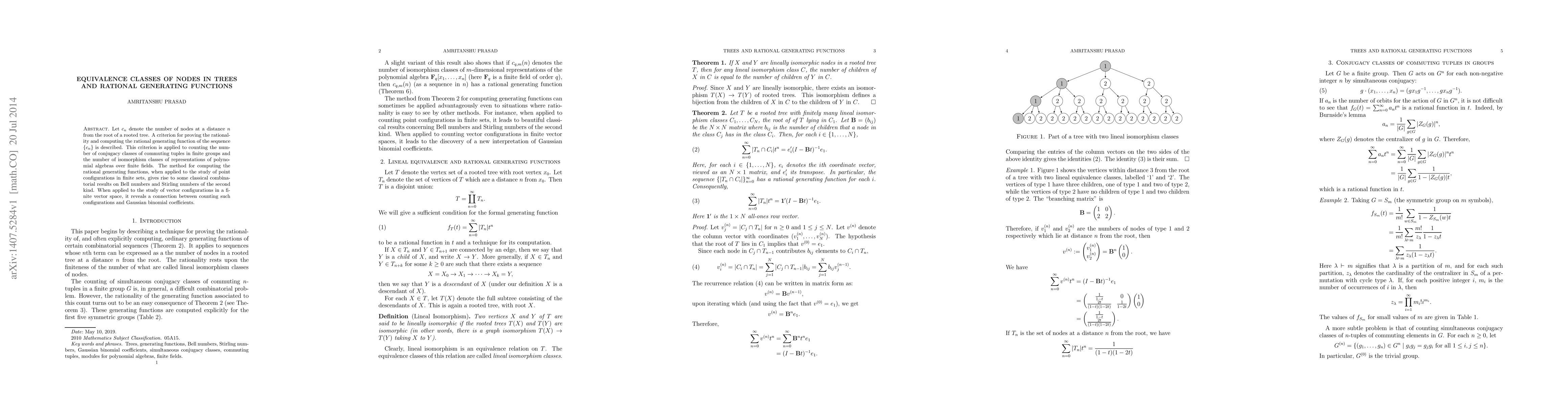 This paper provides a criterion for determining the rationality of generating functions for node distances in rooted trees and applies this to count conjugacy classes in finite groups and isomorphism classes of representations in polynomial algebras. It also connects these methods to classical combinatorial results and Gaussian binomial coefficients.