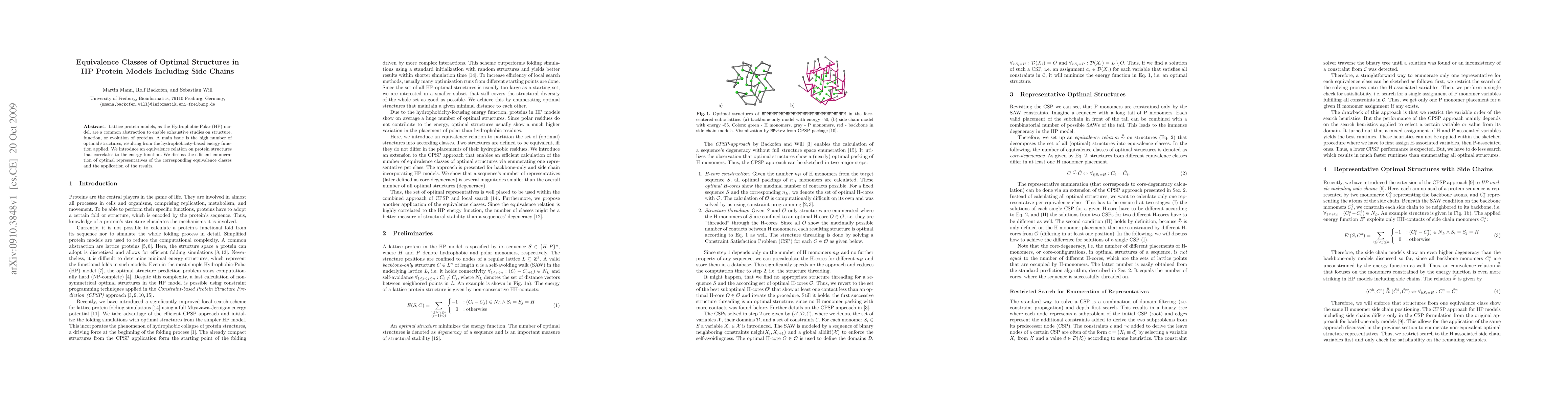 Lattice protein models, as the Hydrophobic-Polar (HP) model, are a common abstraction to enable exhaustive studies on structure, function, or evolution of proteins. A main issue is the high number of optimal structures, resulting from the hydrophobicity-based energy function applied. We introduce an equivalence relation on protein structures that correlates to the energy function. We discuss the efficient enumeration of optimal representatives of the corresponding equivalence classes and the application of the results.