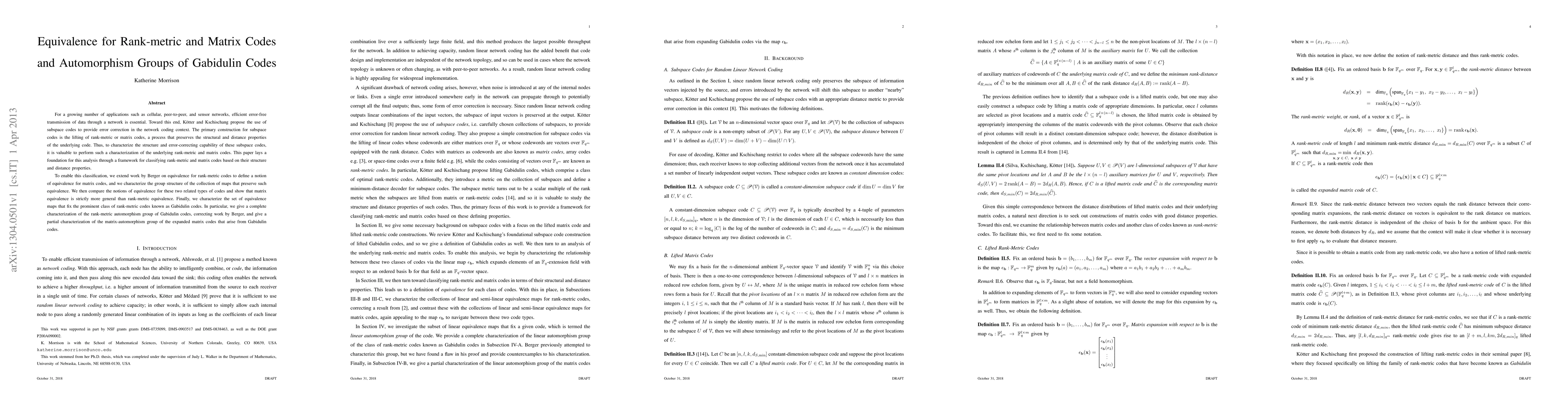 For a growing number of applications such as cellular, peer-to-peer, and sensor networks, efficient error-free transmission of data through a network is essential. Toward this end, K\"{o}tter and Kschischang propose the use of subspace codes to provide error correction in the network coding context. The primary construction for subspace codes is the lifting of rank-metric or matrix codes, a process that preserves the structural and distance properties of the underlying code. Thus, to characterize the structure and error-correcting capability of these subspace codes, it is valuable to perform such a characterization of the underlying rank-metric and matrix codes. This paper lays a foundation for this analysis through a framework for classifying rank-metric and matrix codes based on their structure and distance properties. To enable this classification, we extend work by Berger on equivalence for rank-metric codes to define a notion of equivalence for matrix codes, and we characterize the group structure of the collection of maps that preserve such equivalence. We then compare the notions of equivalence for these two related types of codes and show that matrix equivalence is strictly more general than rank-metric equivalence. Finally, we characterize the set of equivalence maps that fix the prominent class of rank-metric codes known as Gabidulin codes. In particular, we give a complete characterization of the rank-metric automorphism group of Gabidulin codes, correcting work by Berger, and give a partial characterization of the matrix-automorphism group of the expanded matrix codes that arise from Gabidulin codes.